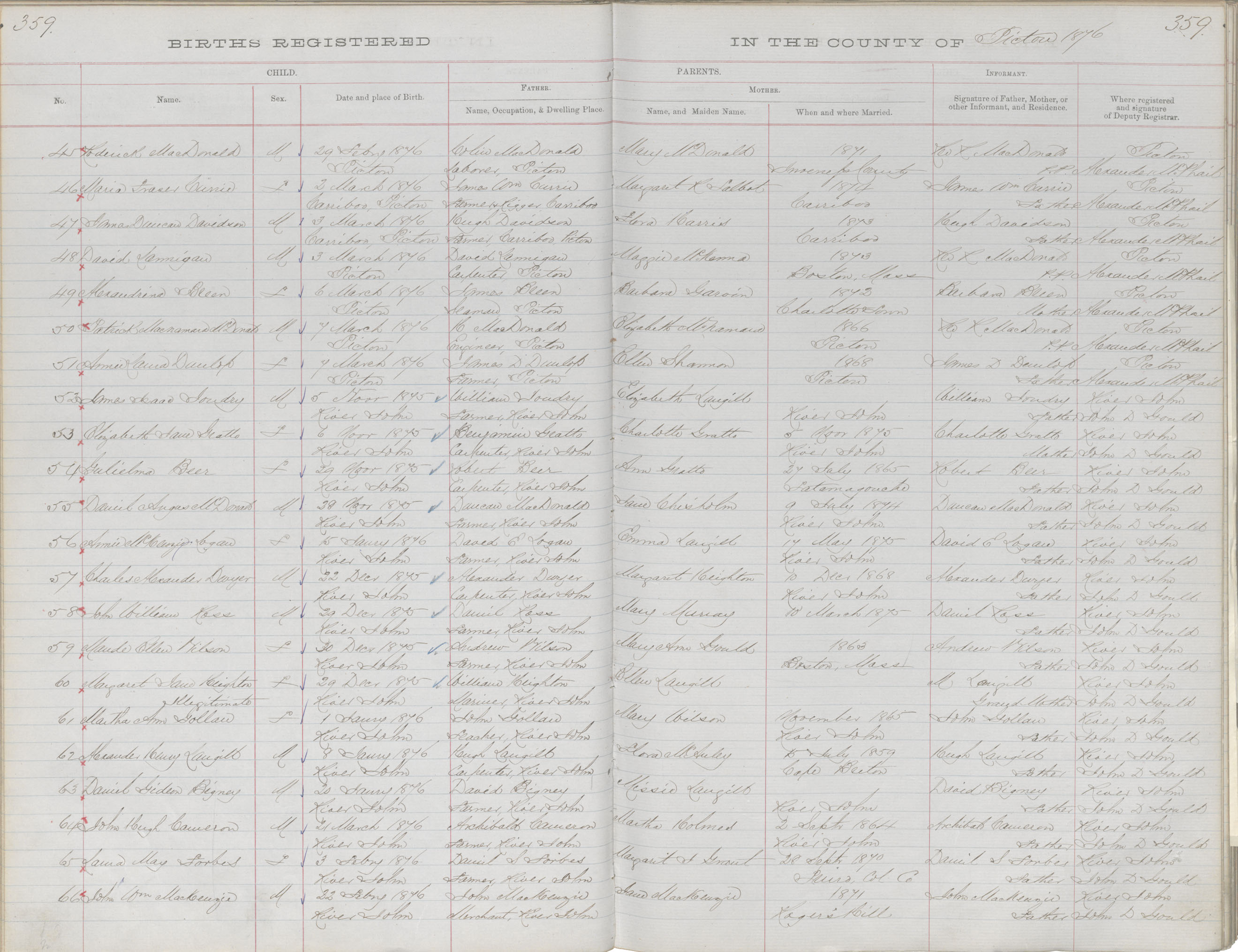 Birth Registration: Year: 1876 book: 1818 page: 359 number: 45