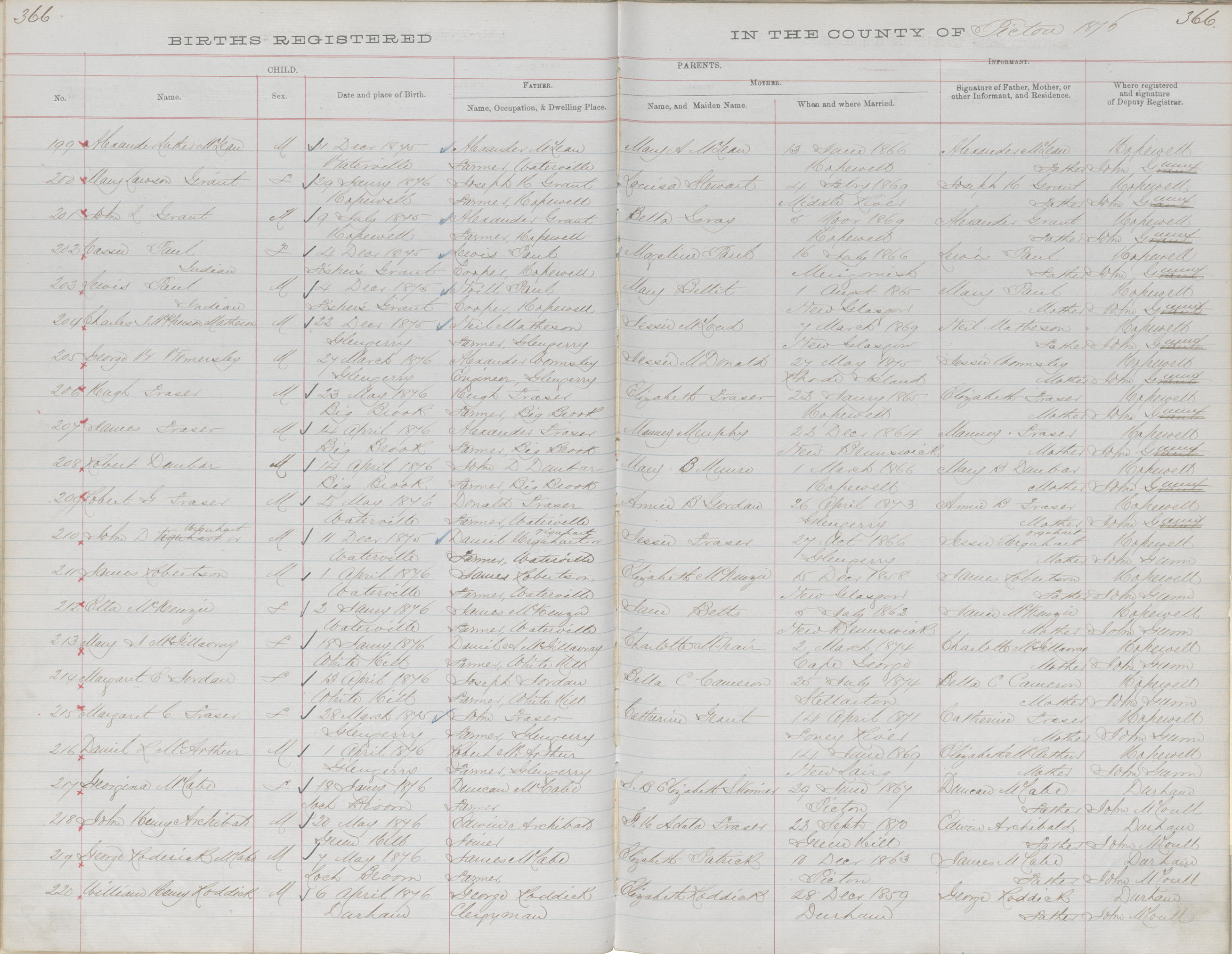 Birth Registration: Year: 1876 book: 1818 page: 366 number: 220
