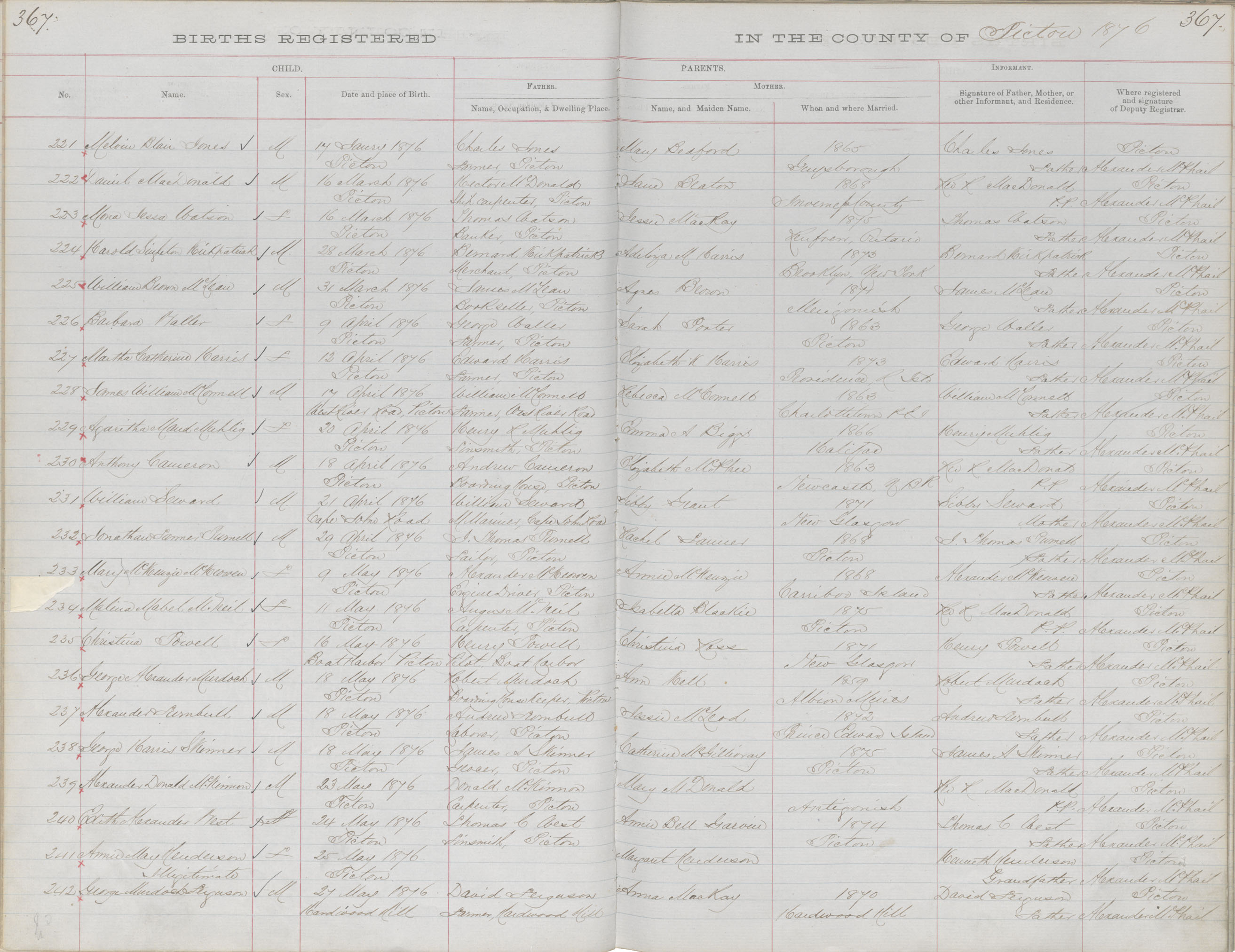 Birth Registration: Year: 1876 book: 1818 page: 367 number: 234