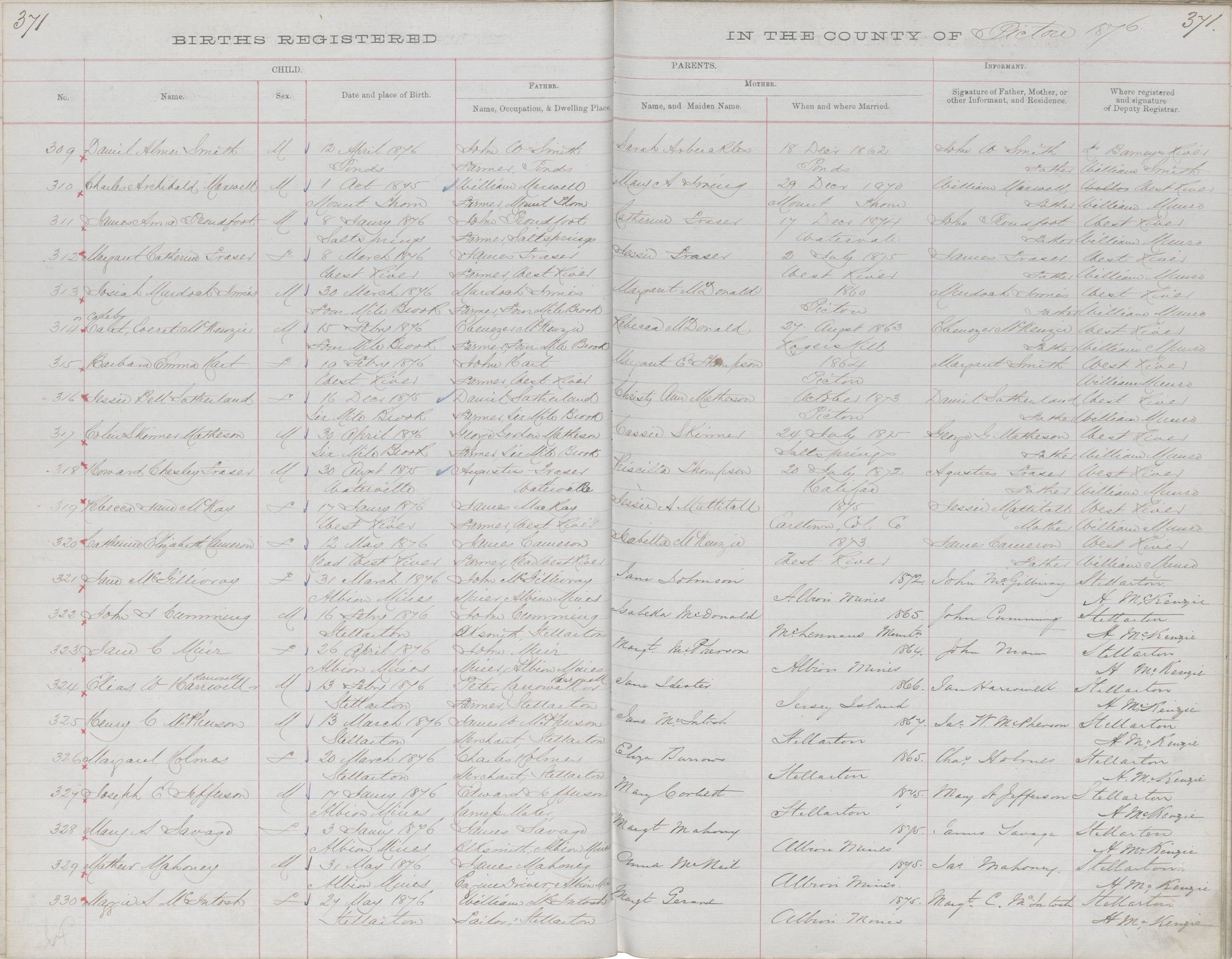 Birth Registration: Year: 1876 book: 1818 page: 371 number: 330