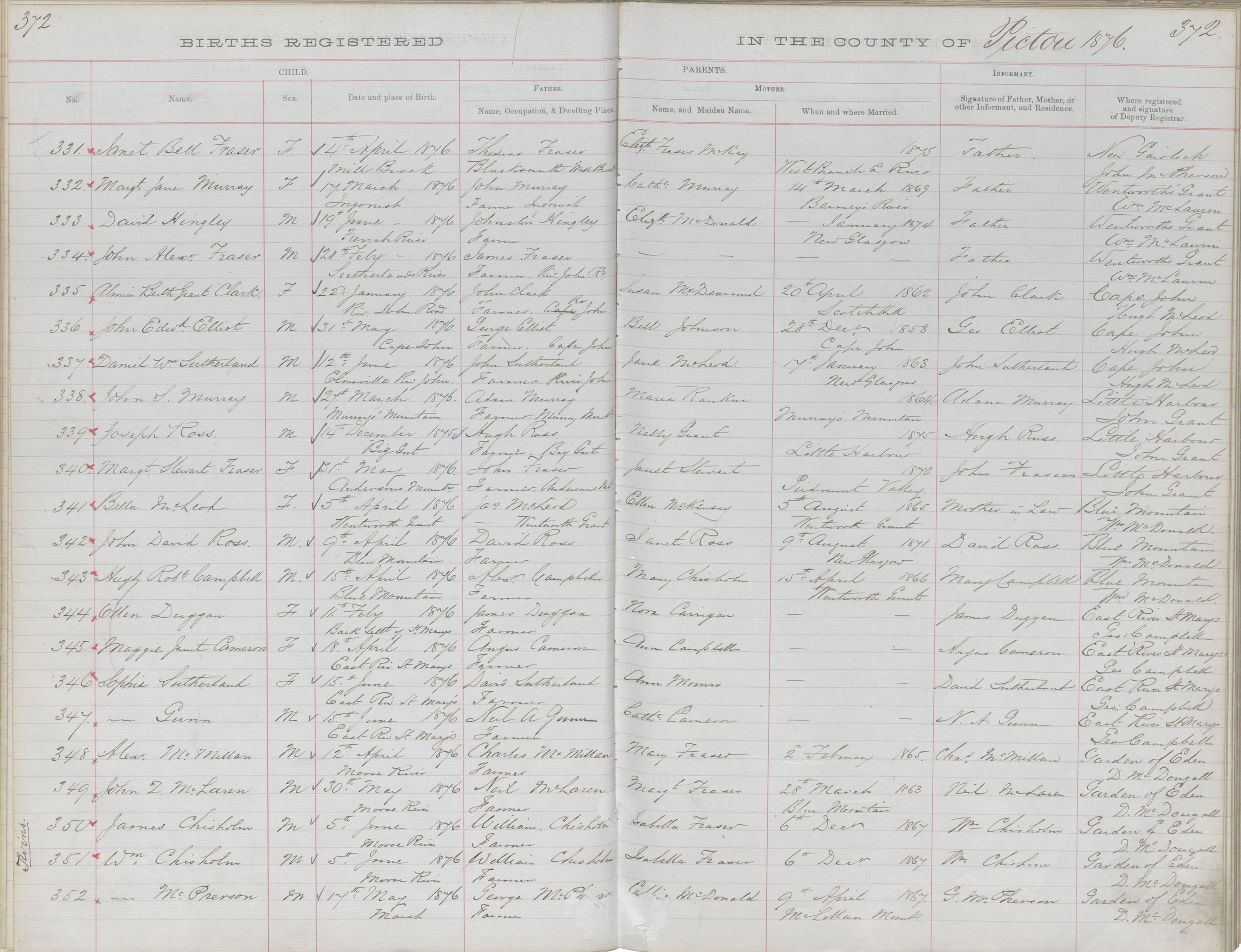 Male Birth Registration: Year: 1876 book: 1818 page: 372 number: 352
