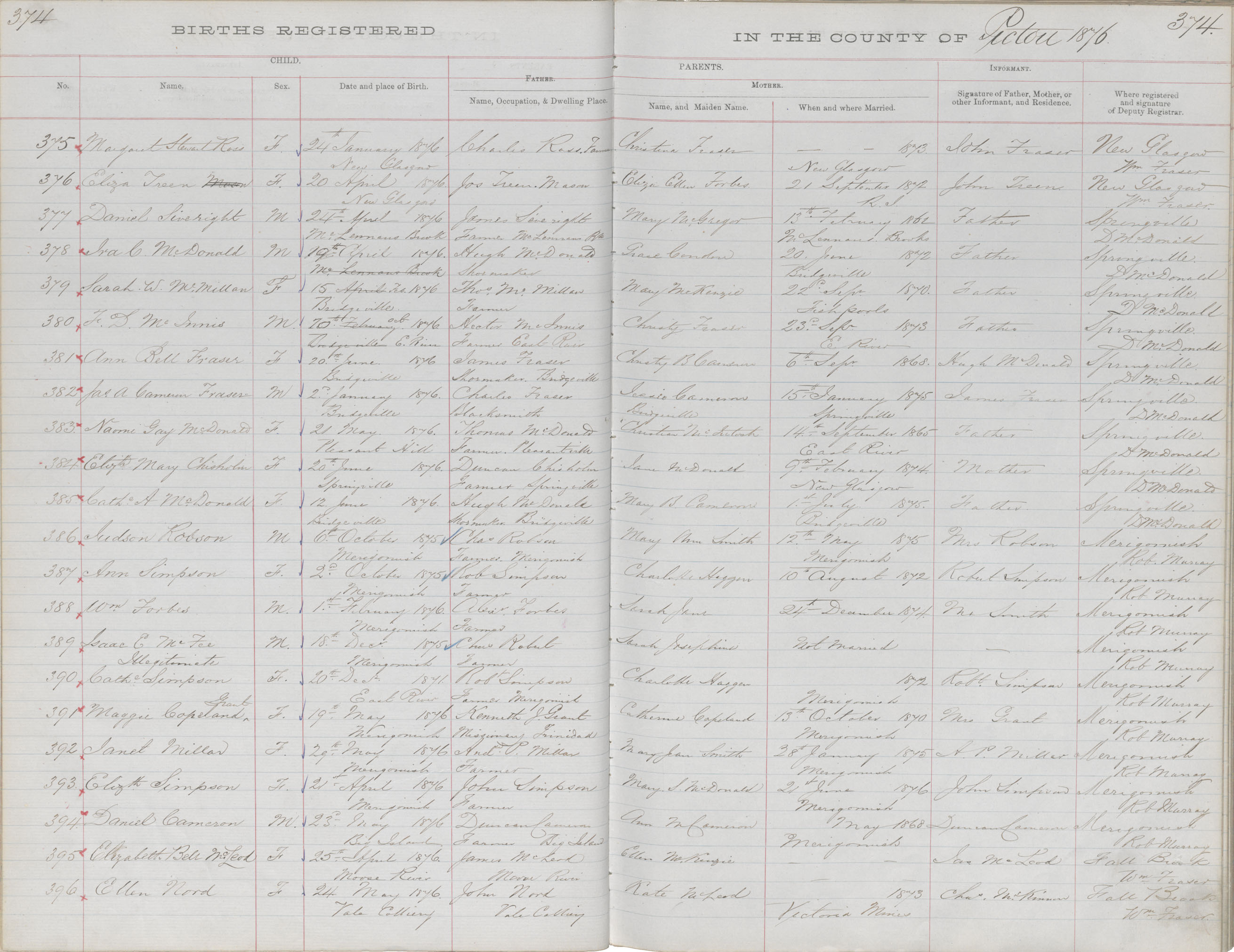 Birth Registration: Year: 1875 book: 1818 page: 374 number: 387