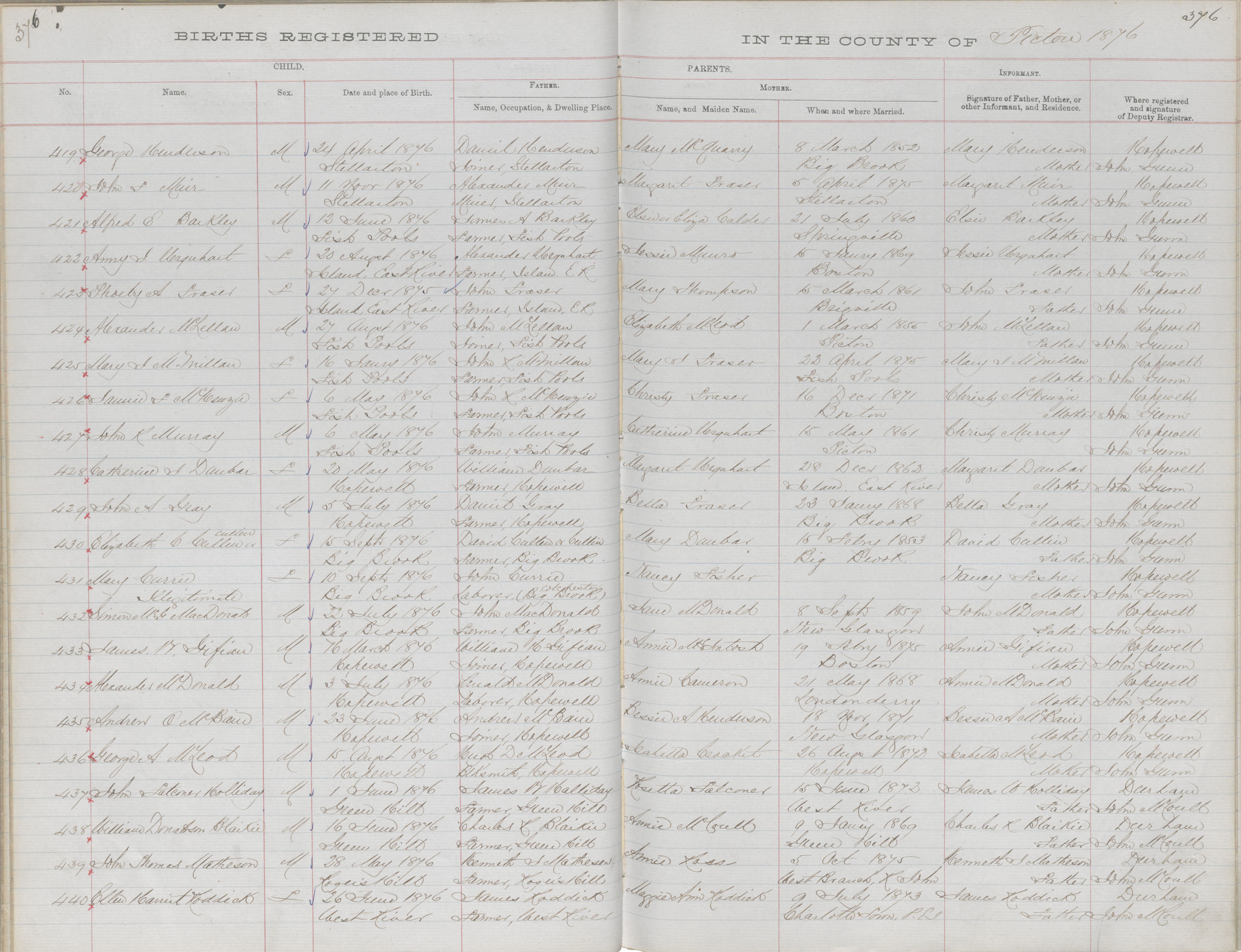 Birth Registration: Year: 1876 book: 1818 page: 376 number: 432