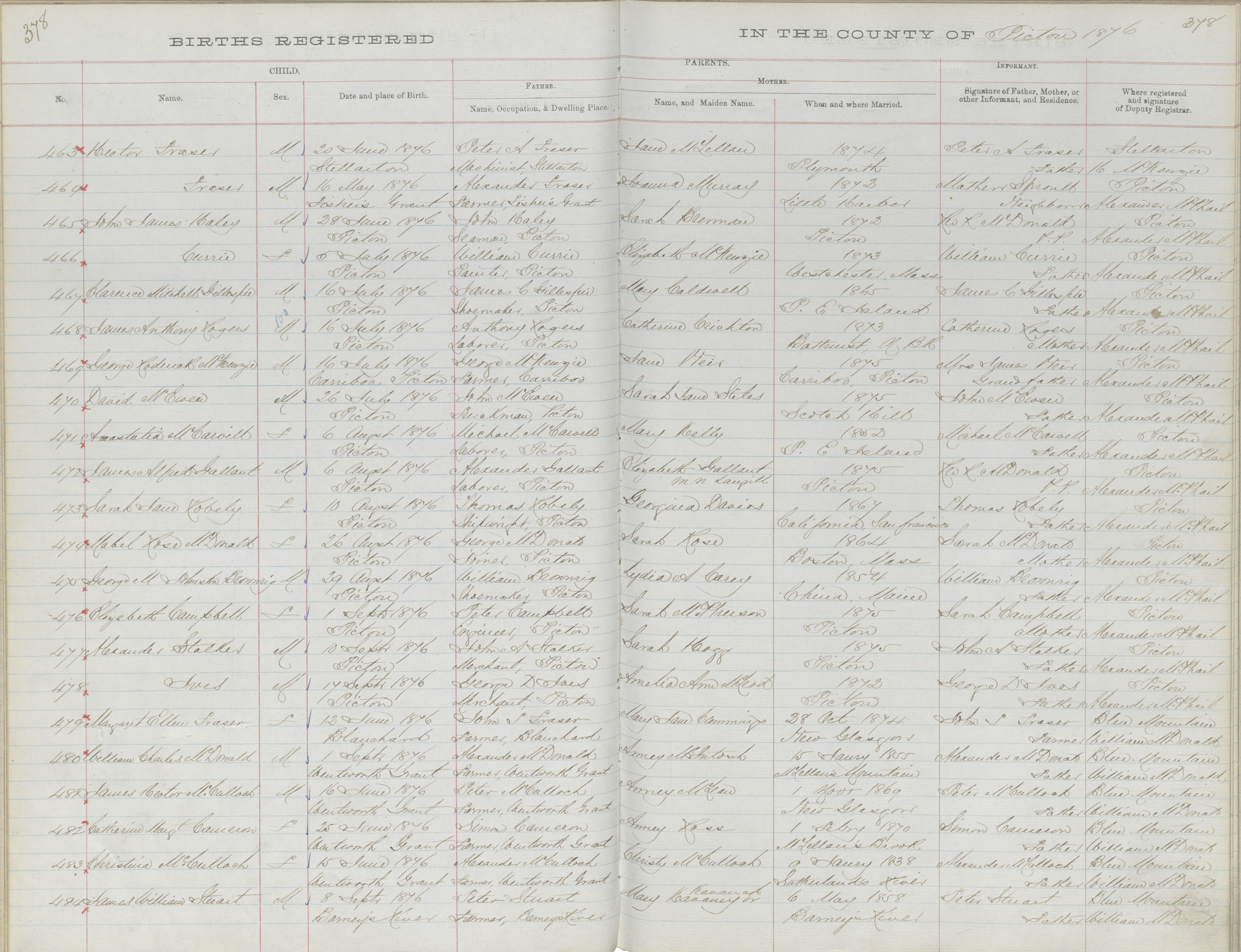 Birth Registration: Year: 1876 book: 1818 page: 378 number: 479