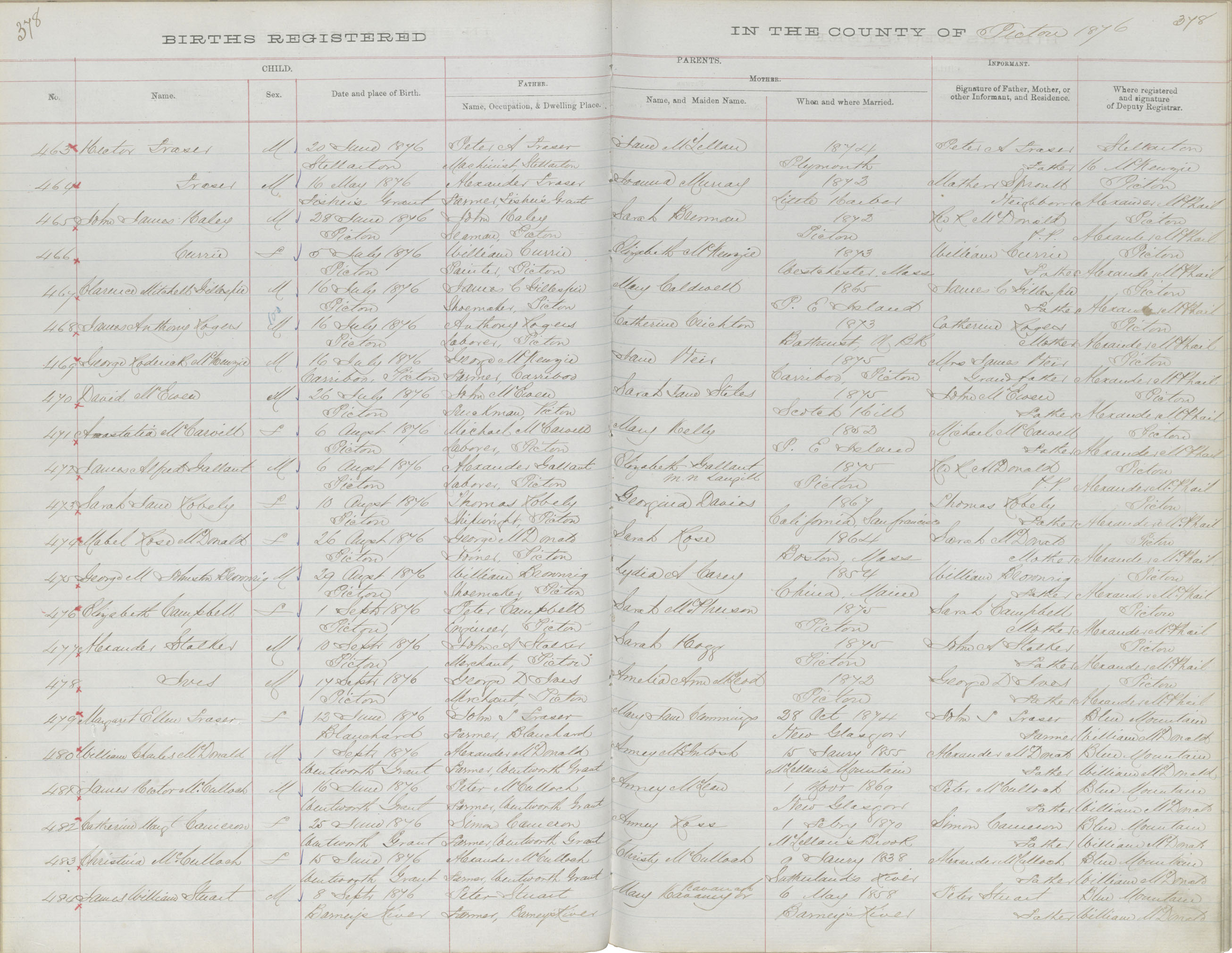Birth Registration: Year: 1876 book: 1818 page: 378 number: 484