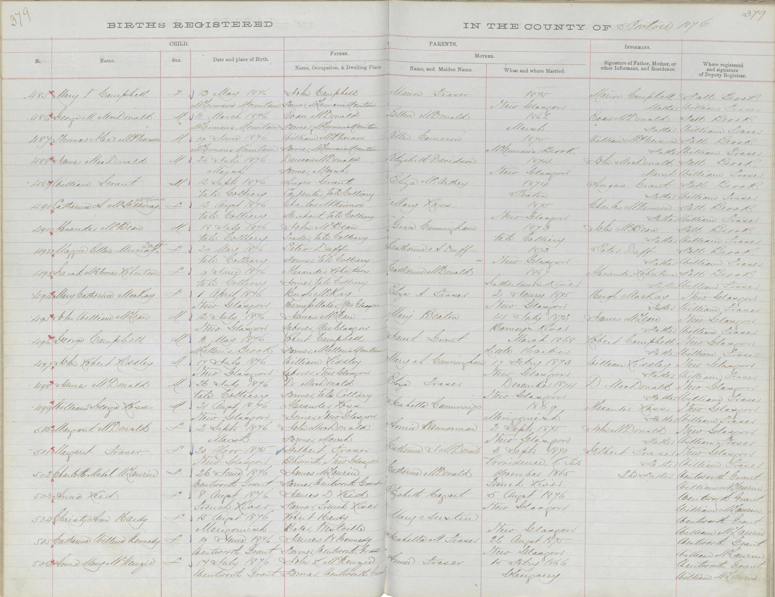 Birth Registration: Year: 1876 book: 1818 page: 379 number: 486