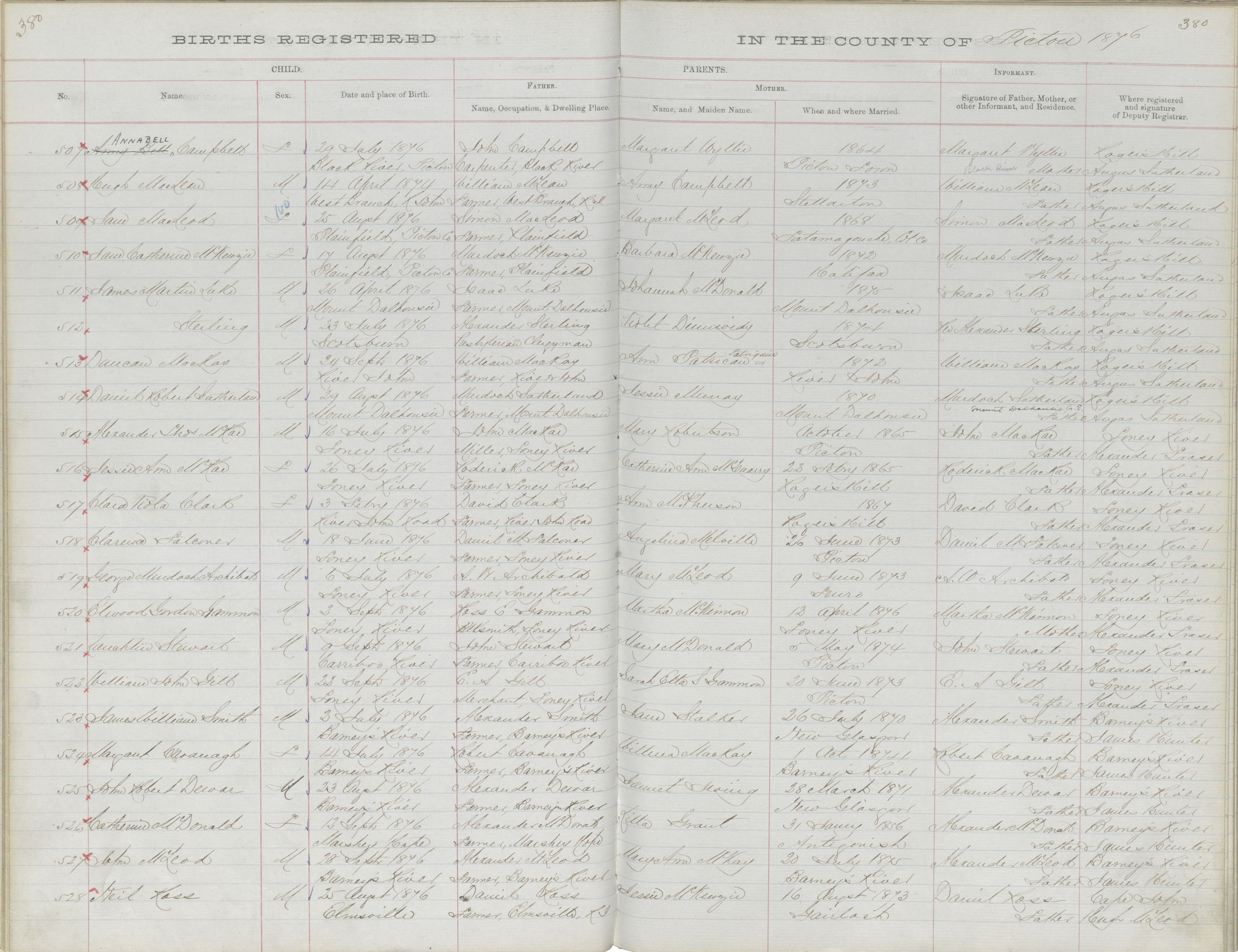 Birth Registration: Year: 1876 book: 1818 page: 380 number: 528
