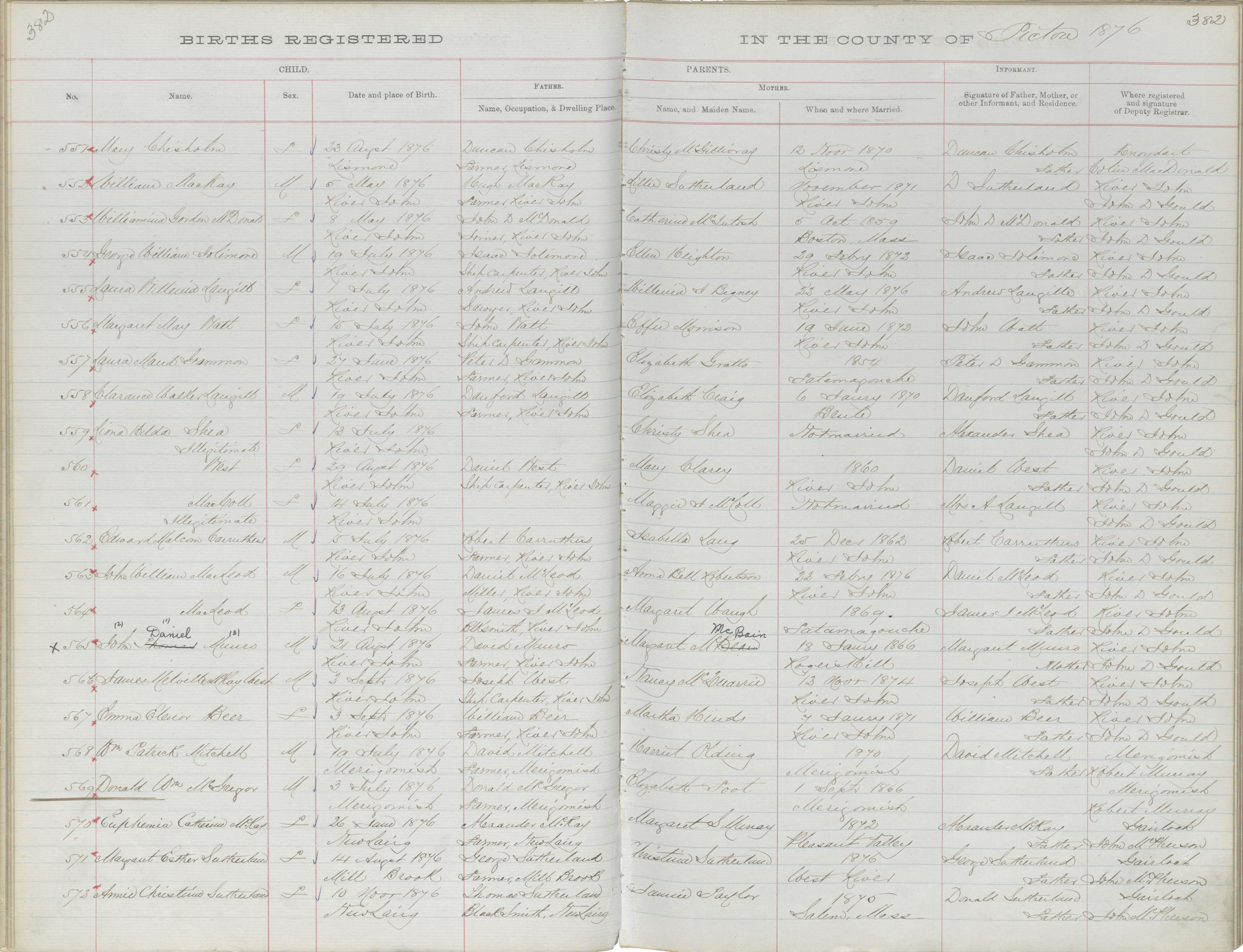 Birth Registration: Year: 1876 book: 1818 page: 382 number: 572
