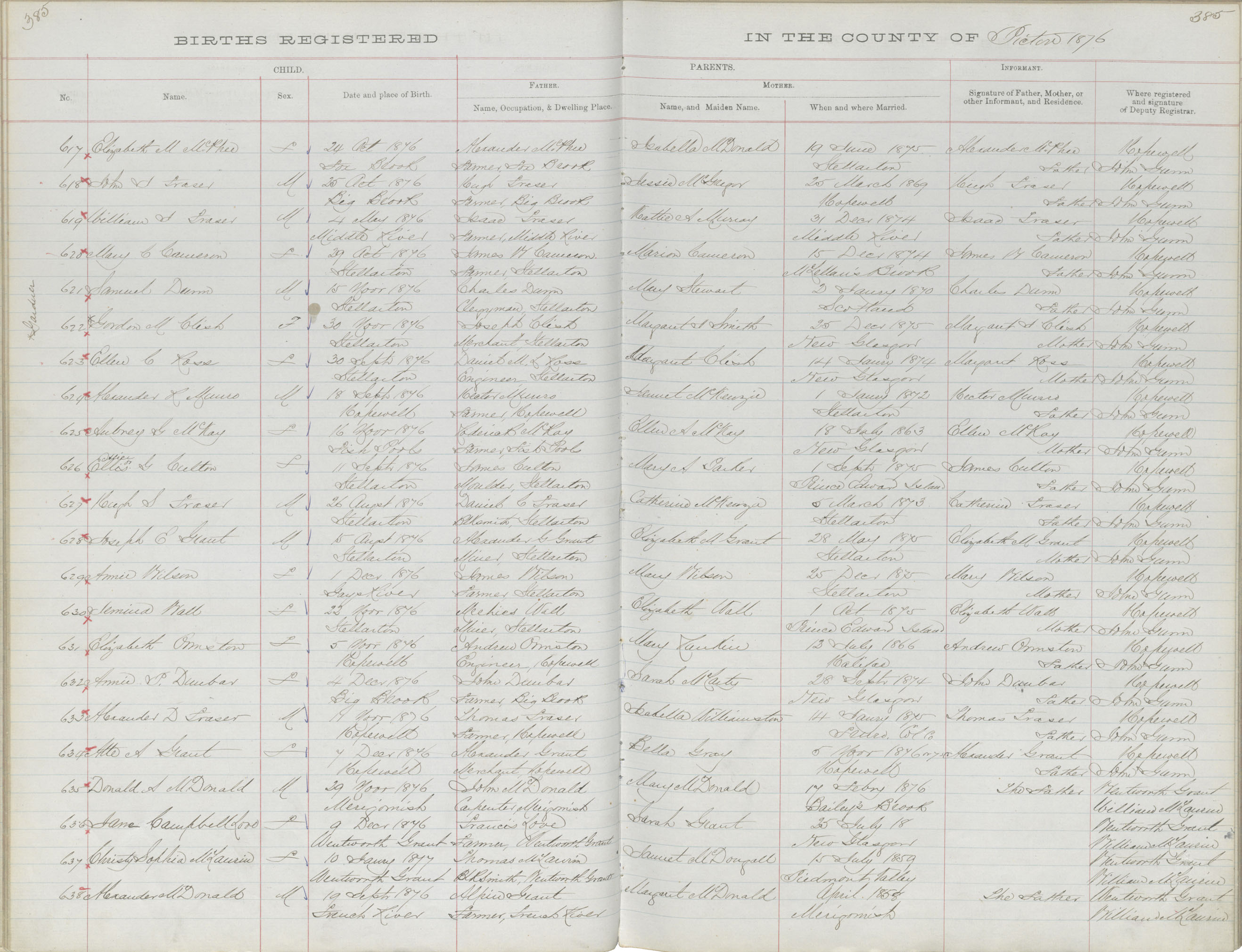 Birth Registration: Year: 1876 book: 1818 page: 385 number: 617