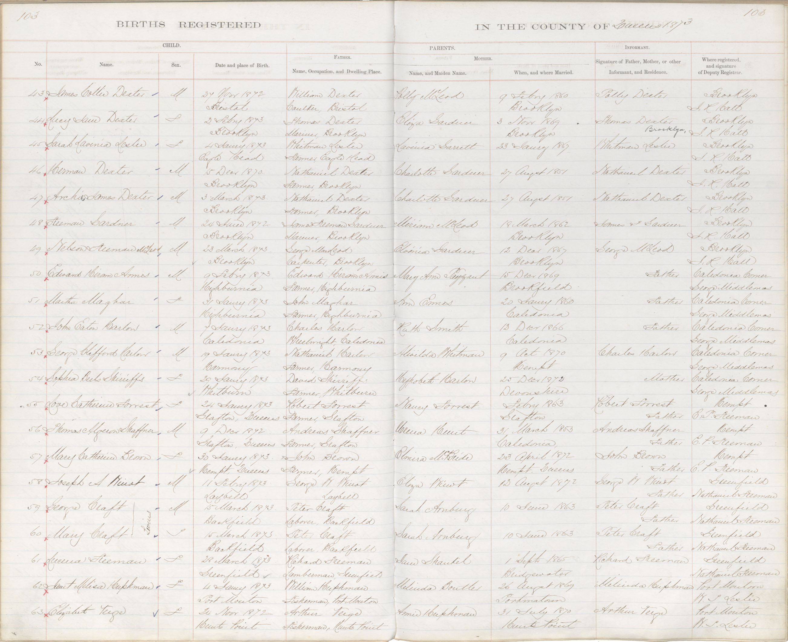 Birth Registration: Year: 1872 book: 1819 page: 103 number: 63