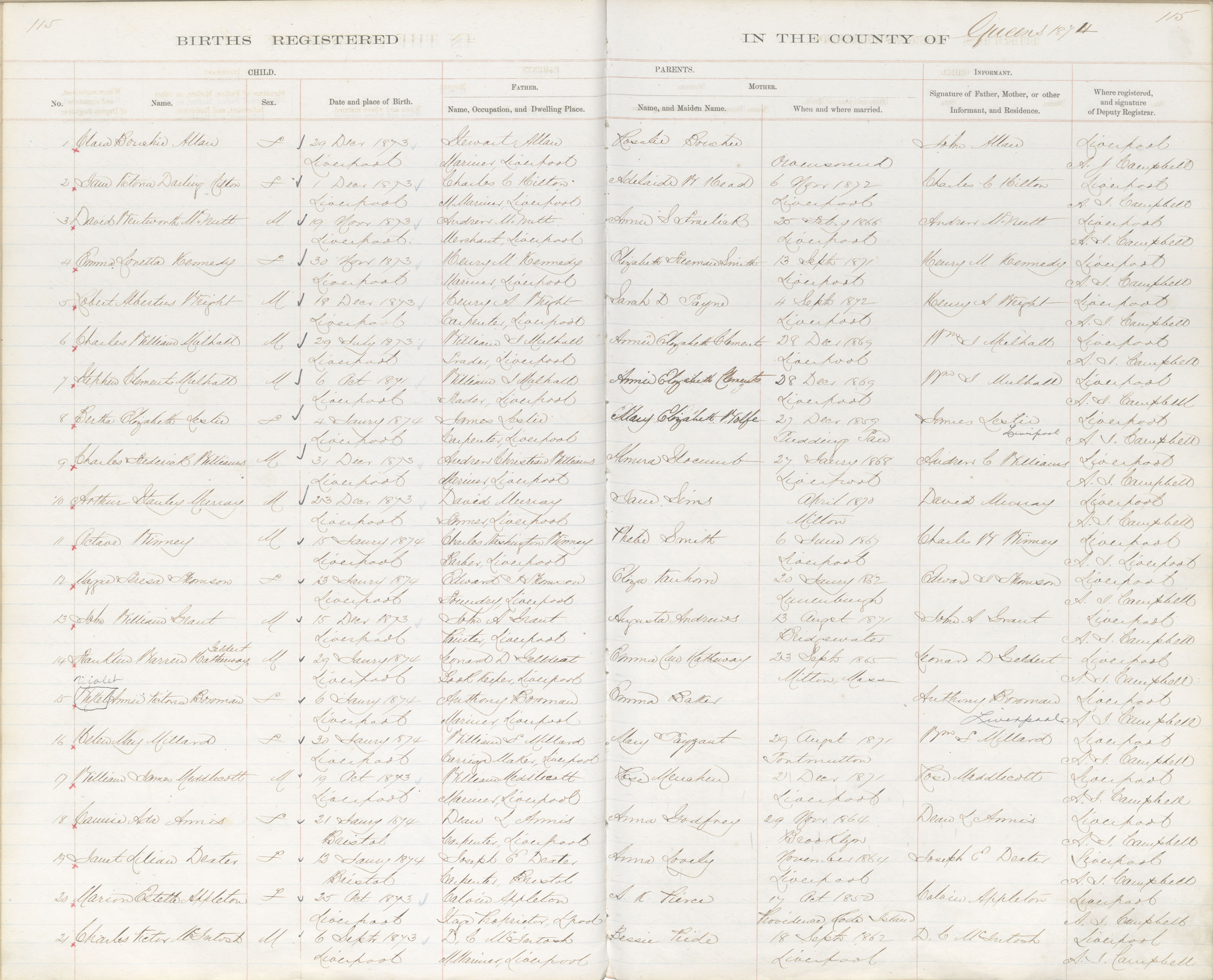 Birth Registration: Year: 1873 book: 1819 page: 115 number: 21