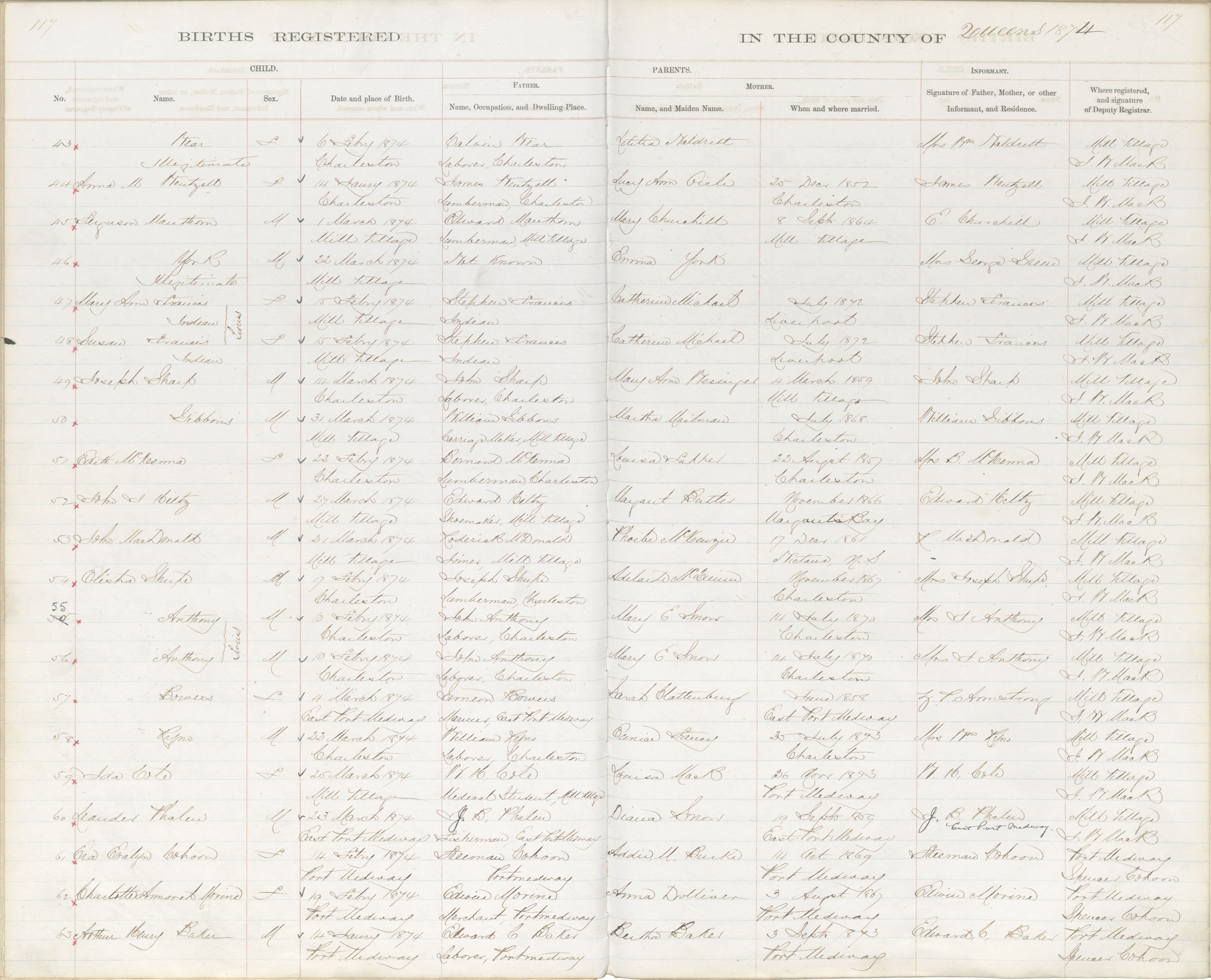 Birth Registration: Year: 1874 book: 1819 page: 117 number: 53