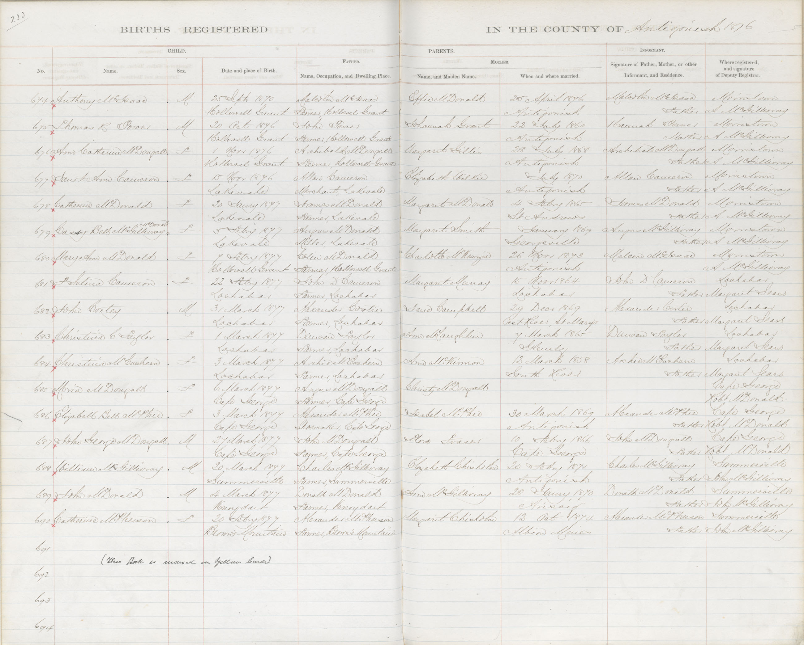Birth Registration: Year: 1870 book: 1802 page: 233 number: 674