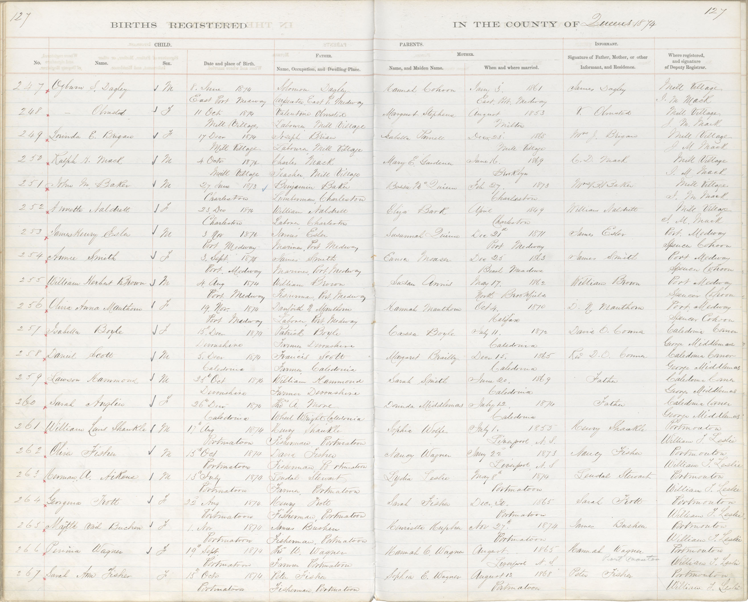 Birth Registration: Year: 1874 book: 1819 page: 127 number: 247