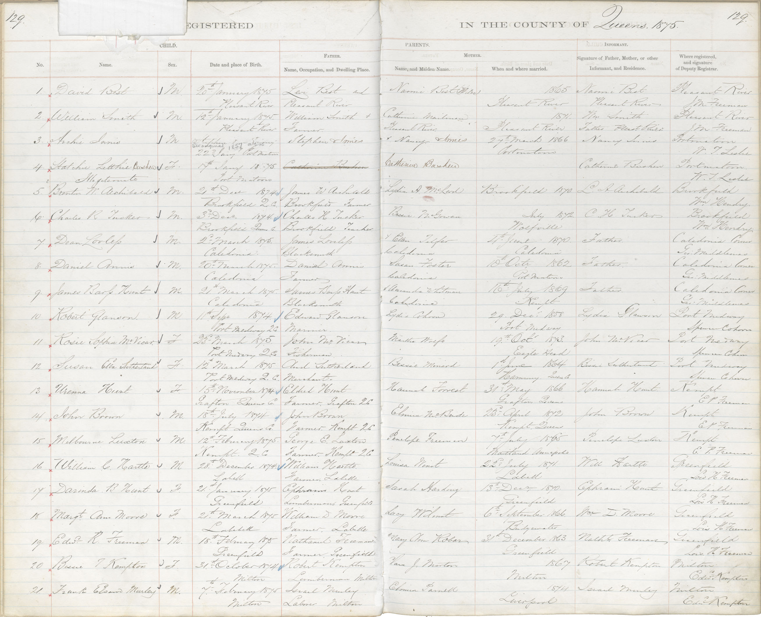 Birth Registration: Year: 1864 book: 1819 page: 129 number: 3