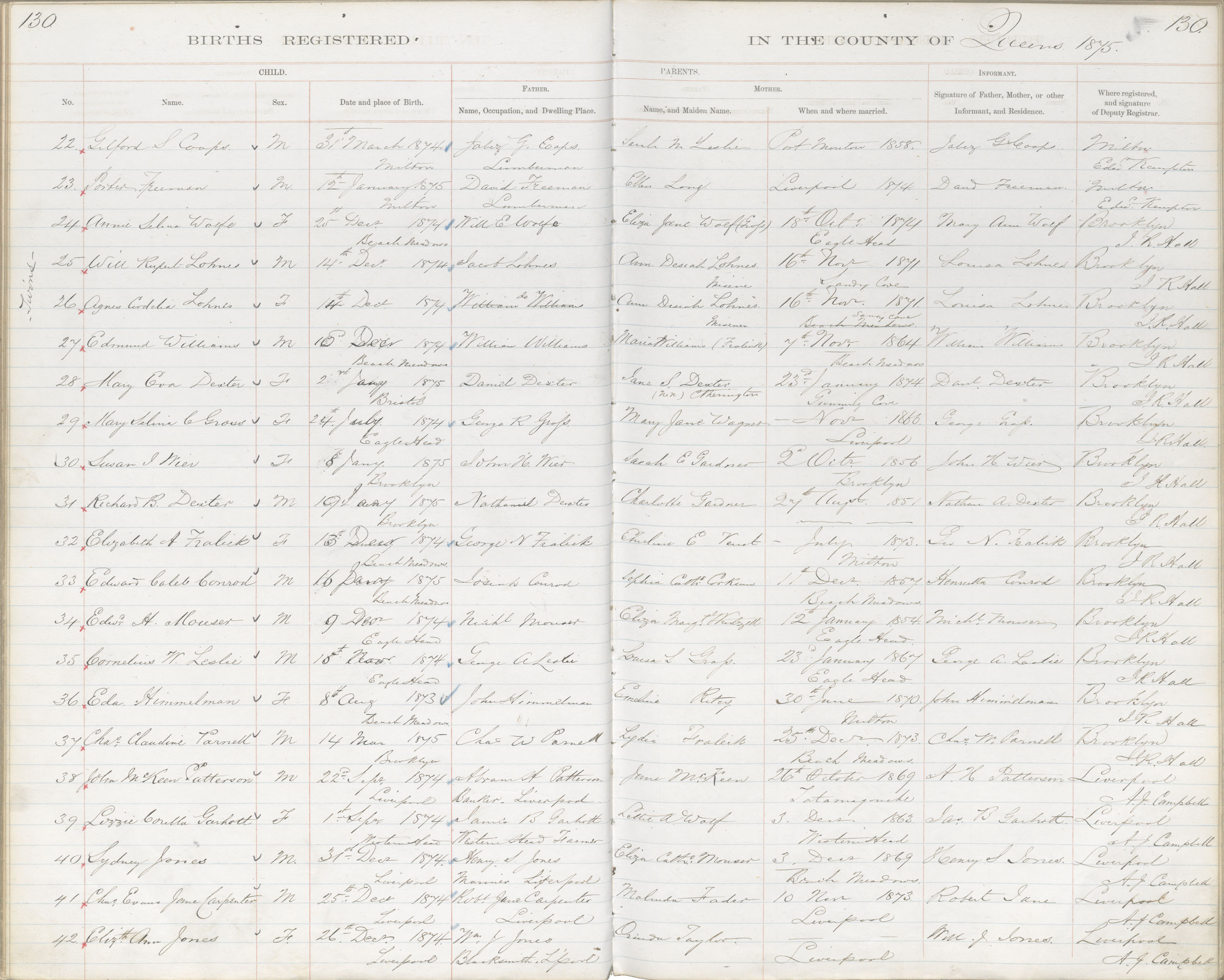 Birth Registration: Year: 1874 book: 1819 page: 130 number: 22