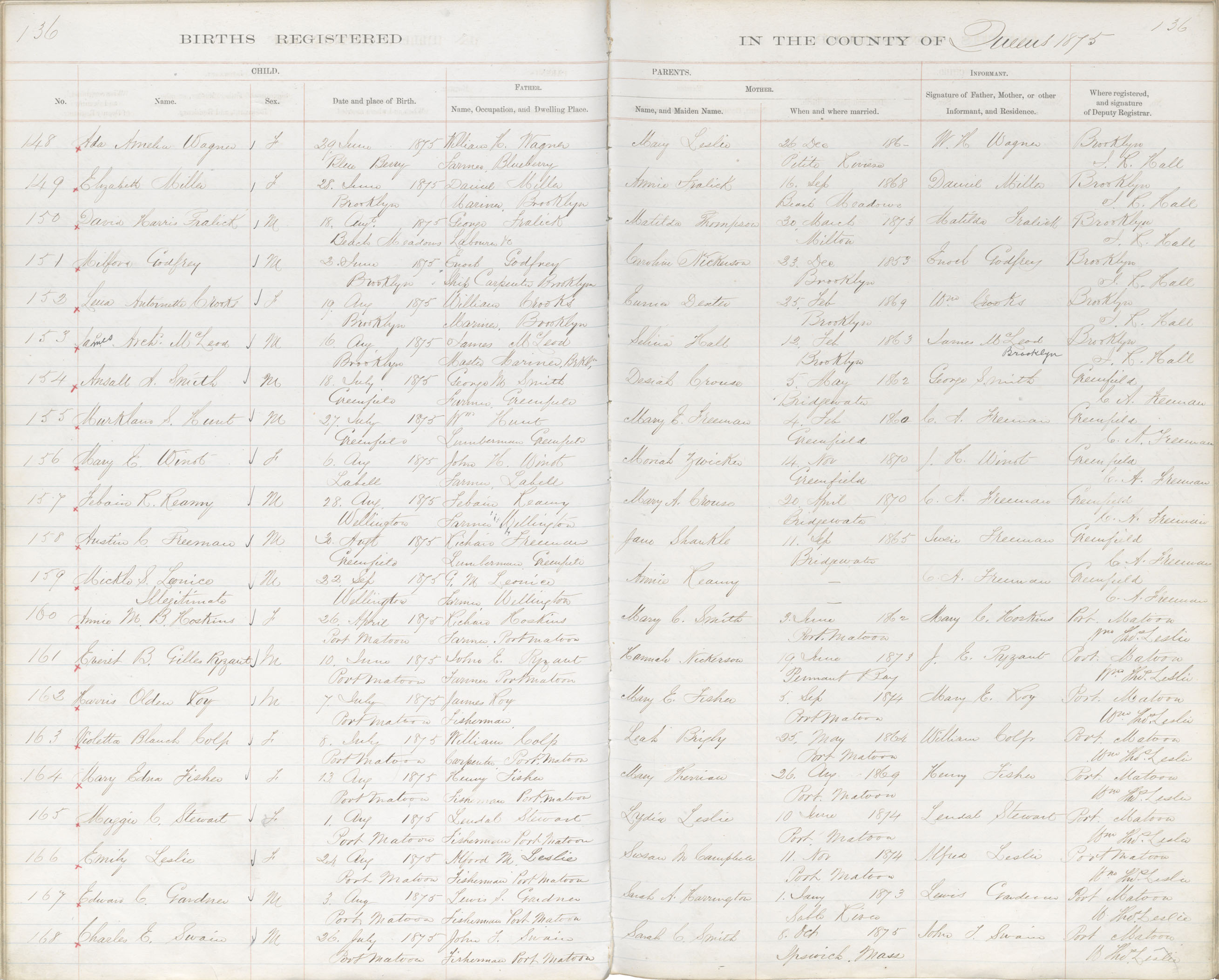 Birth Registration: Year: 1875 book: 1819 page: 136 number: 168