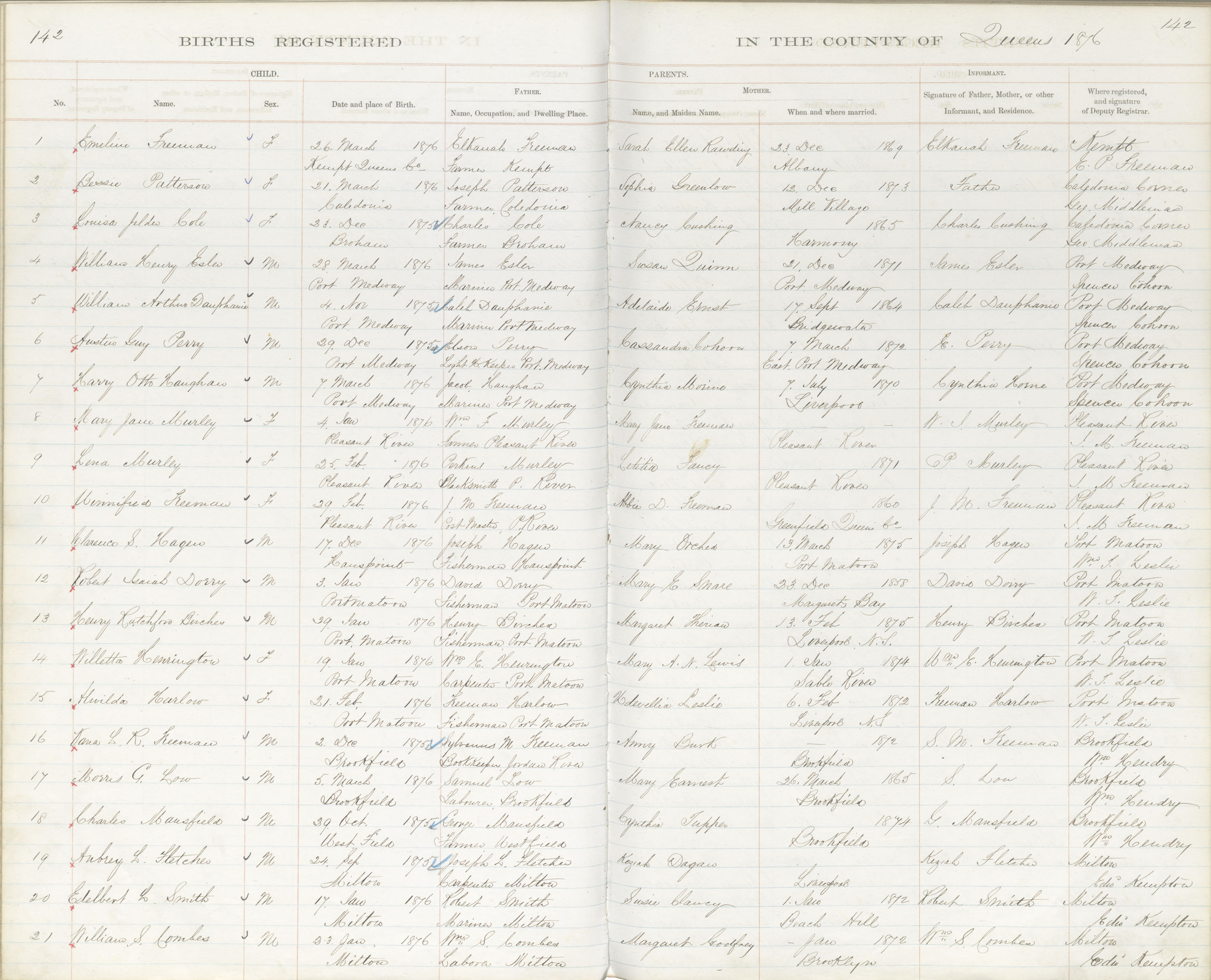 Birth Registration: Year: 1876 book: 1819 page: 142 number: 1