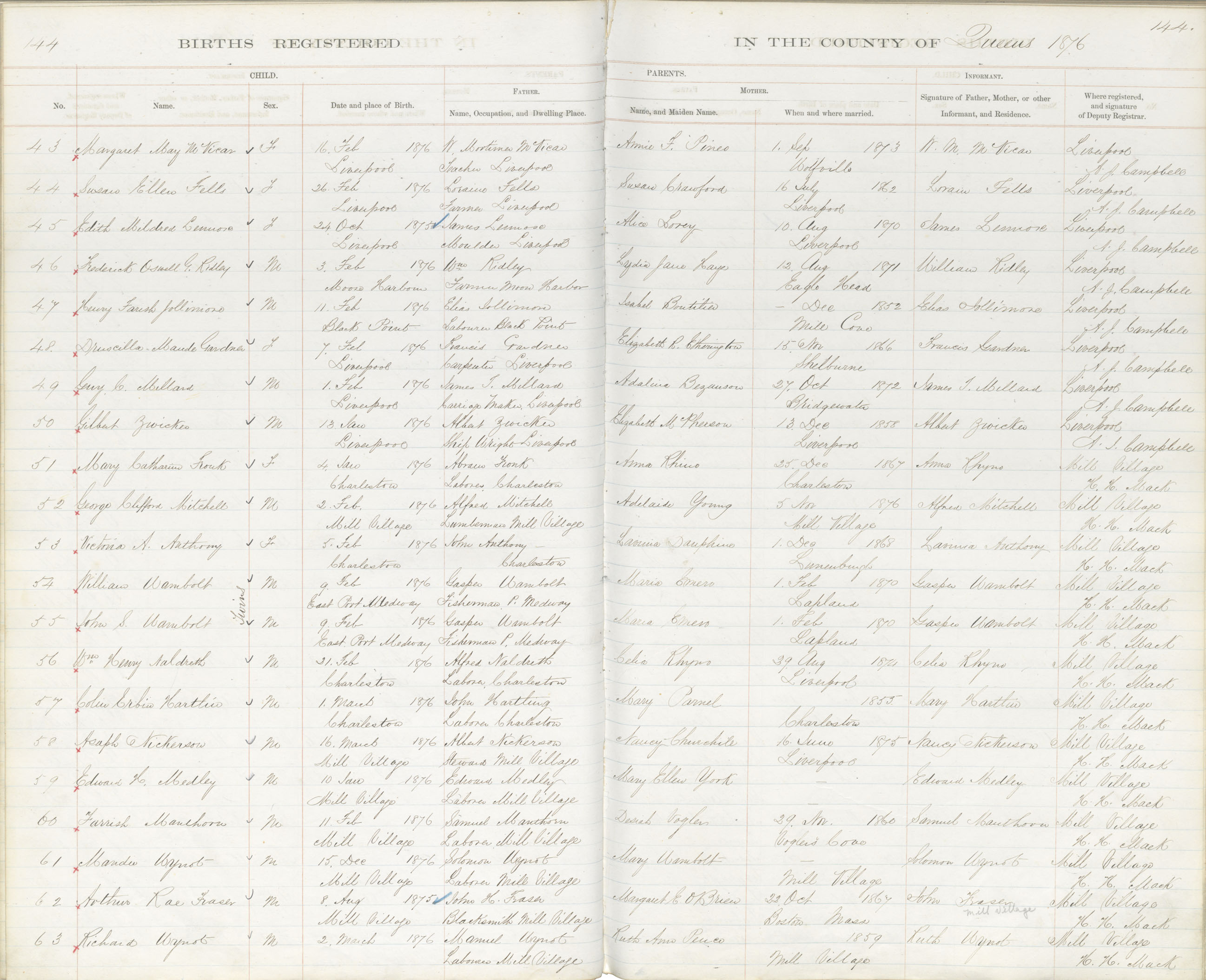 Birth Registration: Year: 1876 book: 1819 page: 144 number: 43