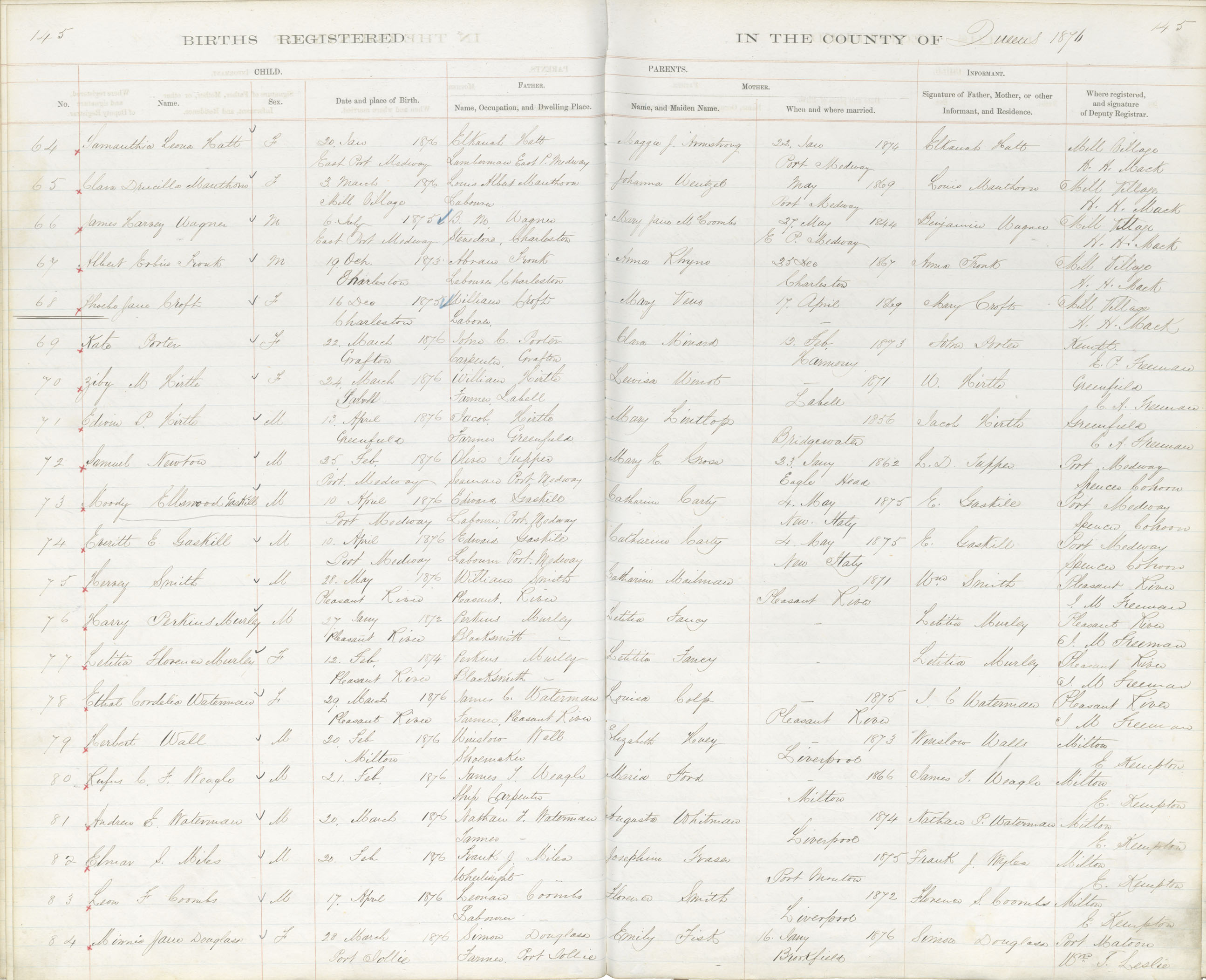 Birth Registration: Year: 1876 book: 1819 page: 145 number: 64