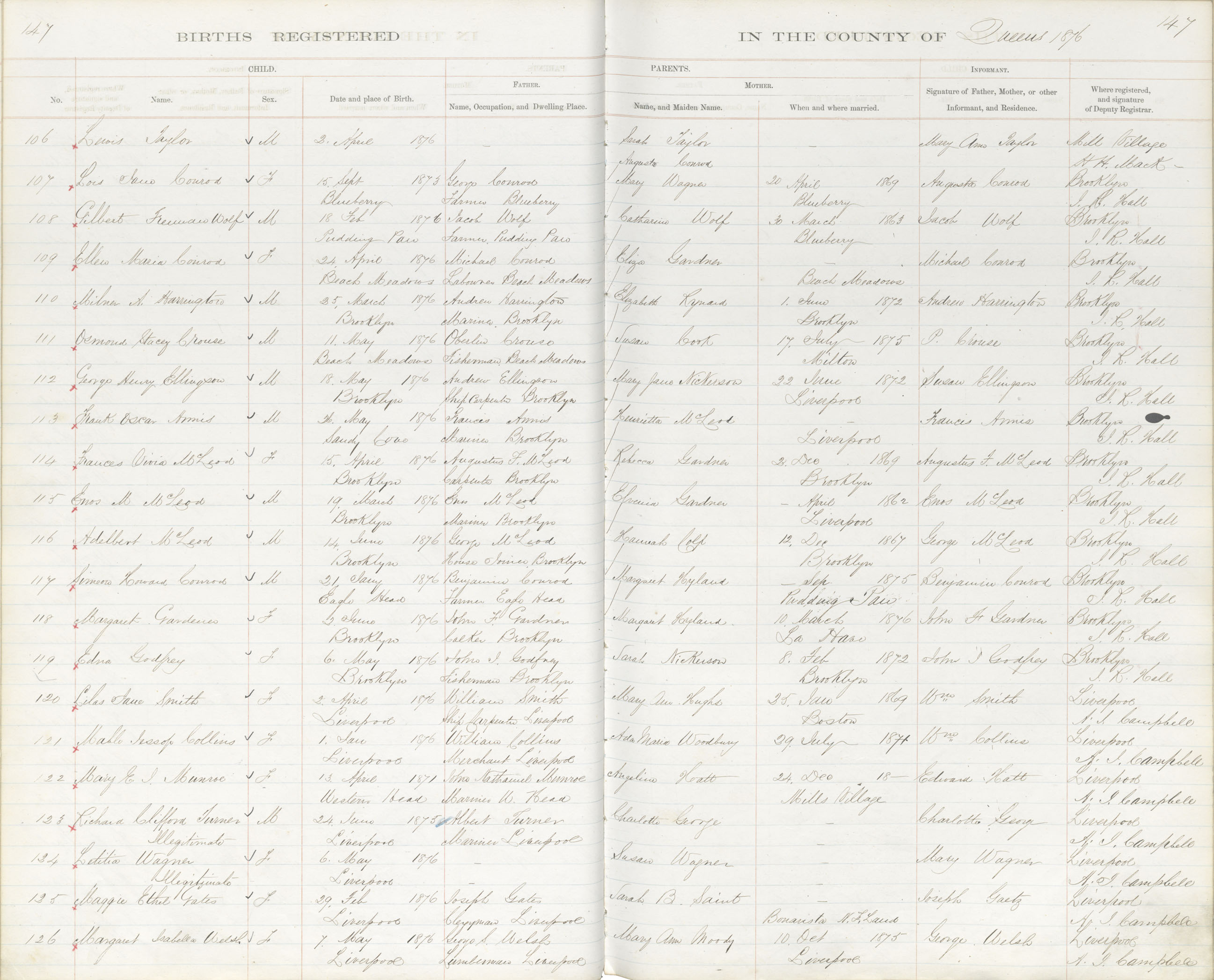 Male Birth Registration: Year: 1876 book: 1819 page: 147 number: 86