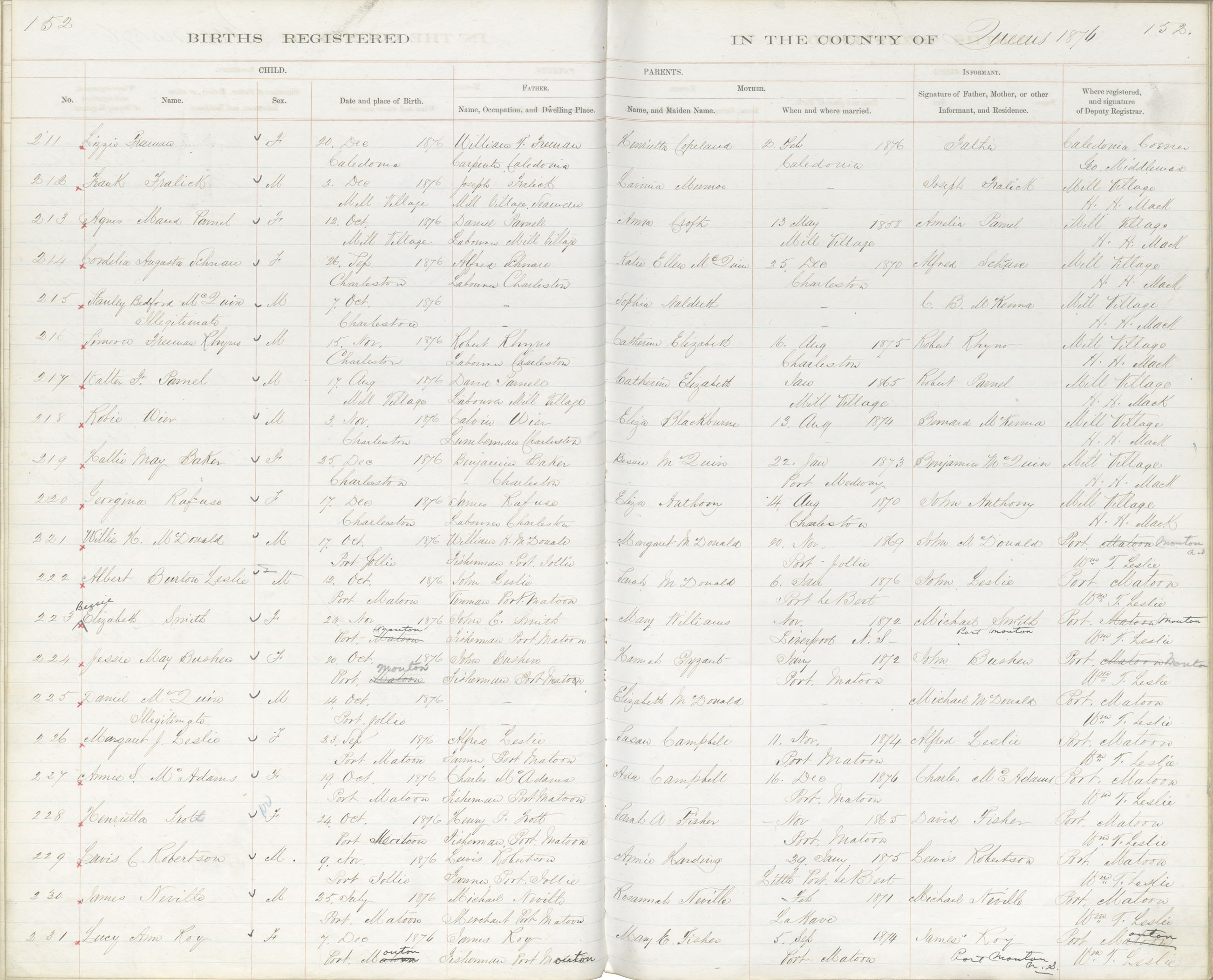 Birth Registration: Year: 1876 book: 1819 page: 152 number: 231
