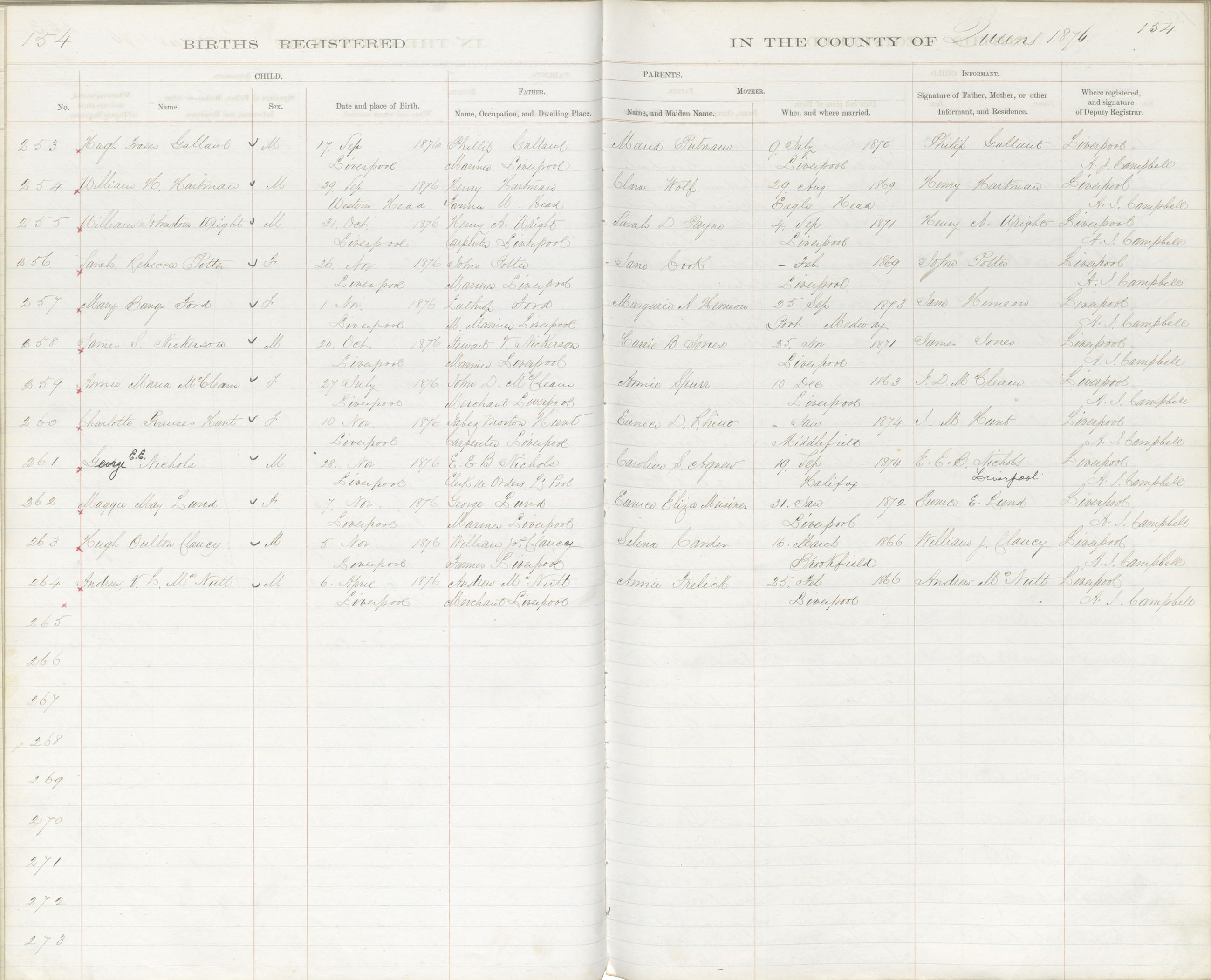 Birth Registration: Year: 1876 book: 1819 page: 154 number: 264