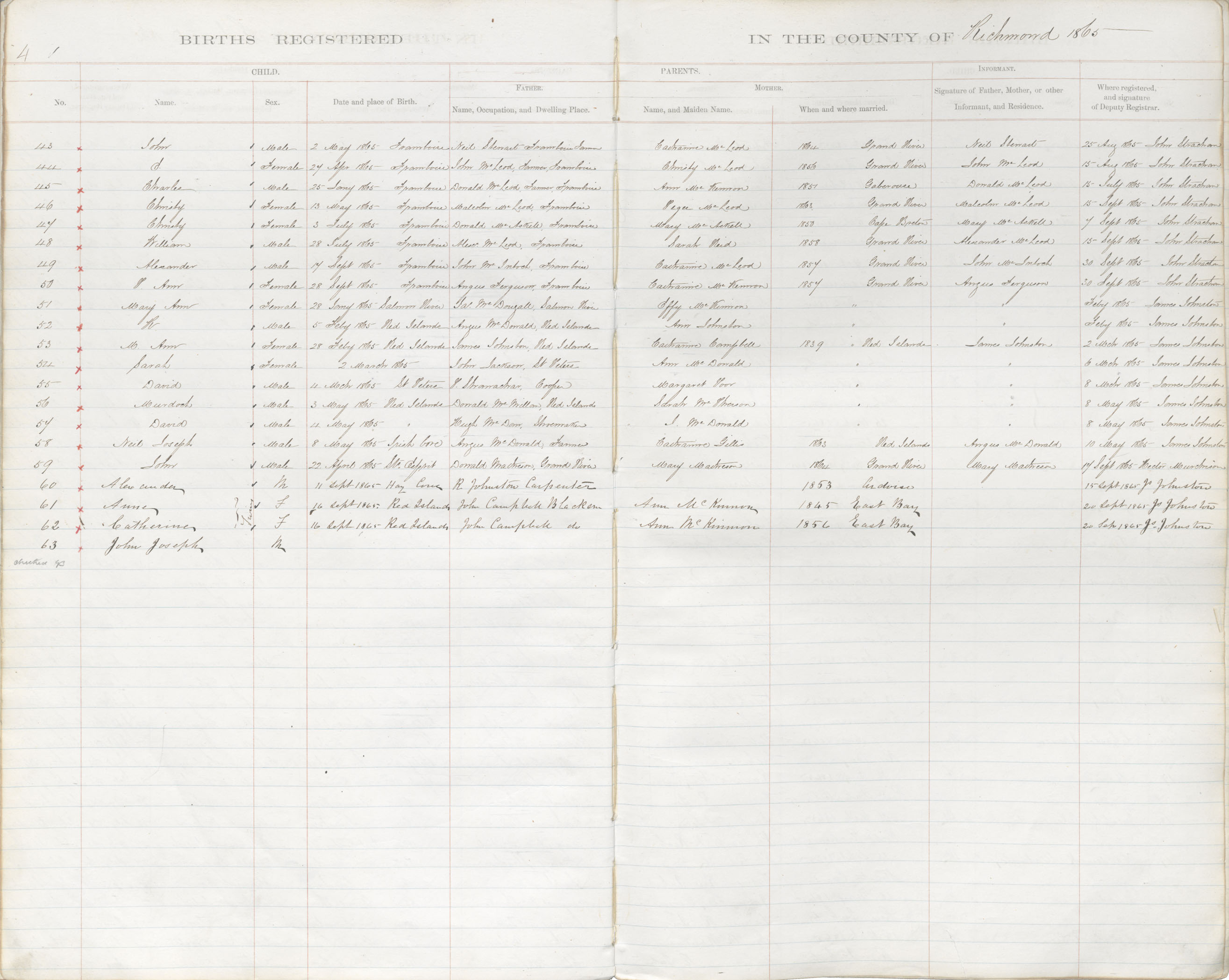 Male Birth Registration: Year: 1865 book: 1820 page: 4 number: 57