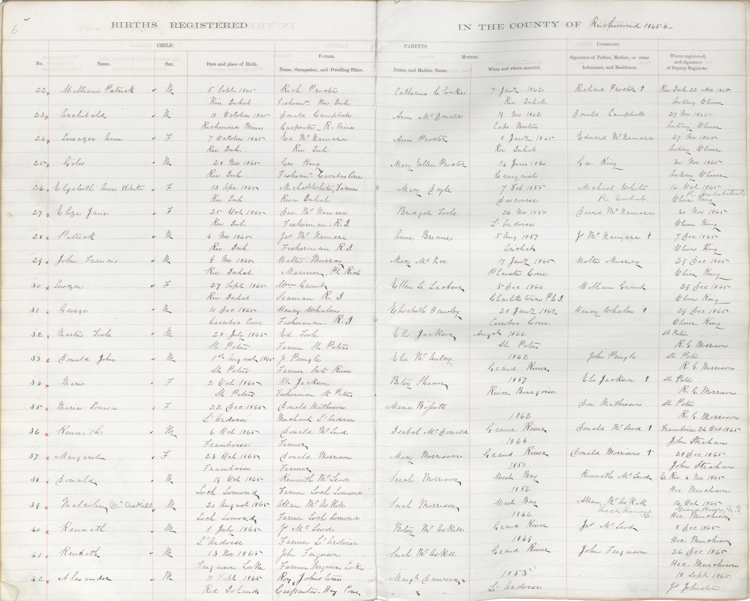 Male Birth Registration: Year: 1865 book: 1820 page: 6 number: 42