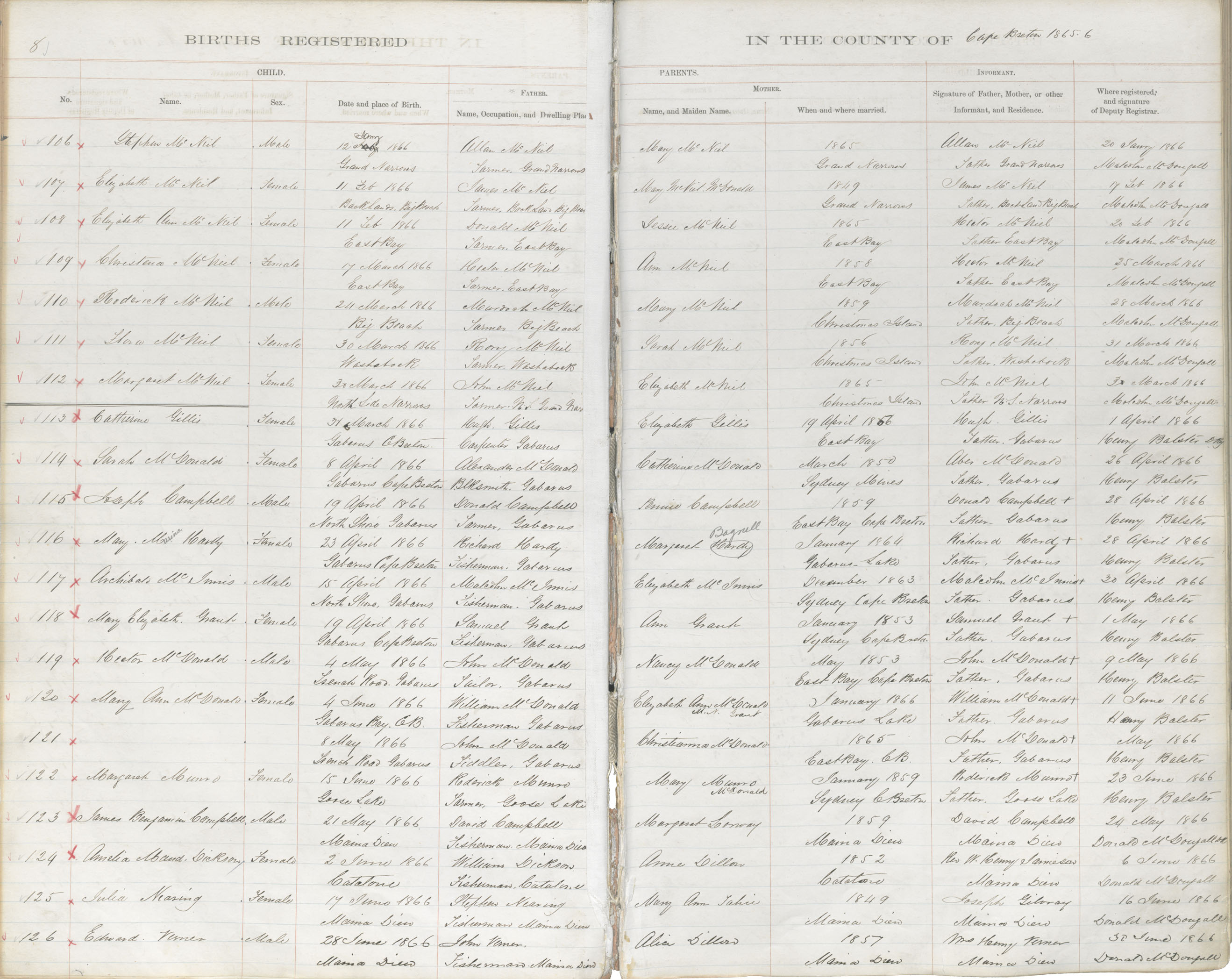 Birth Registration: Year: 1866 book: 1803 page: 8 number: 121