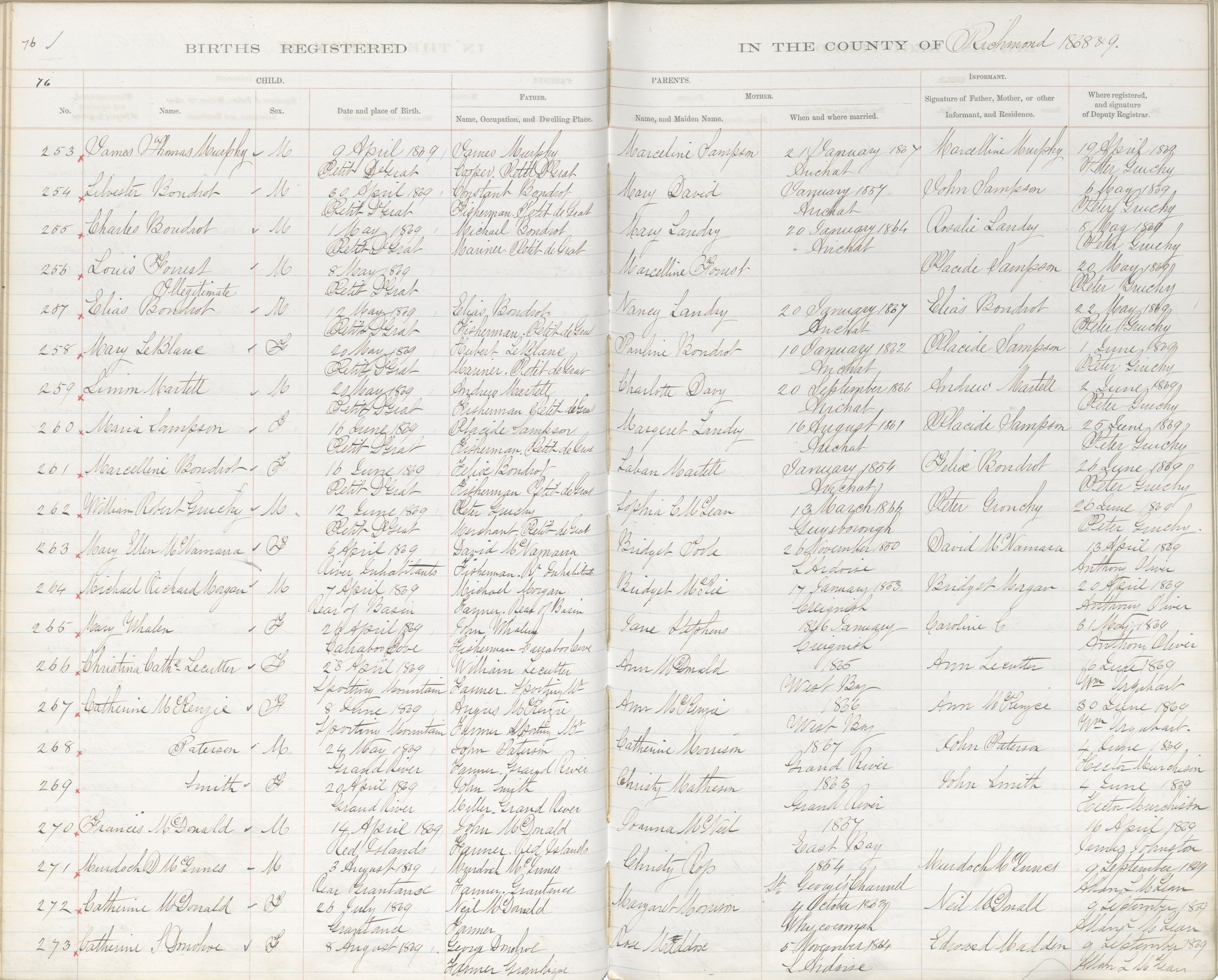 Female Birth Registration: Year: 1869 book: 1820 page: 76 number: 272