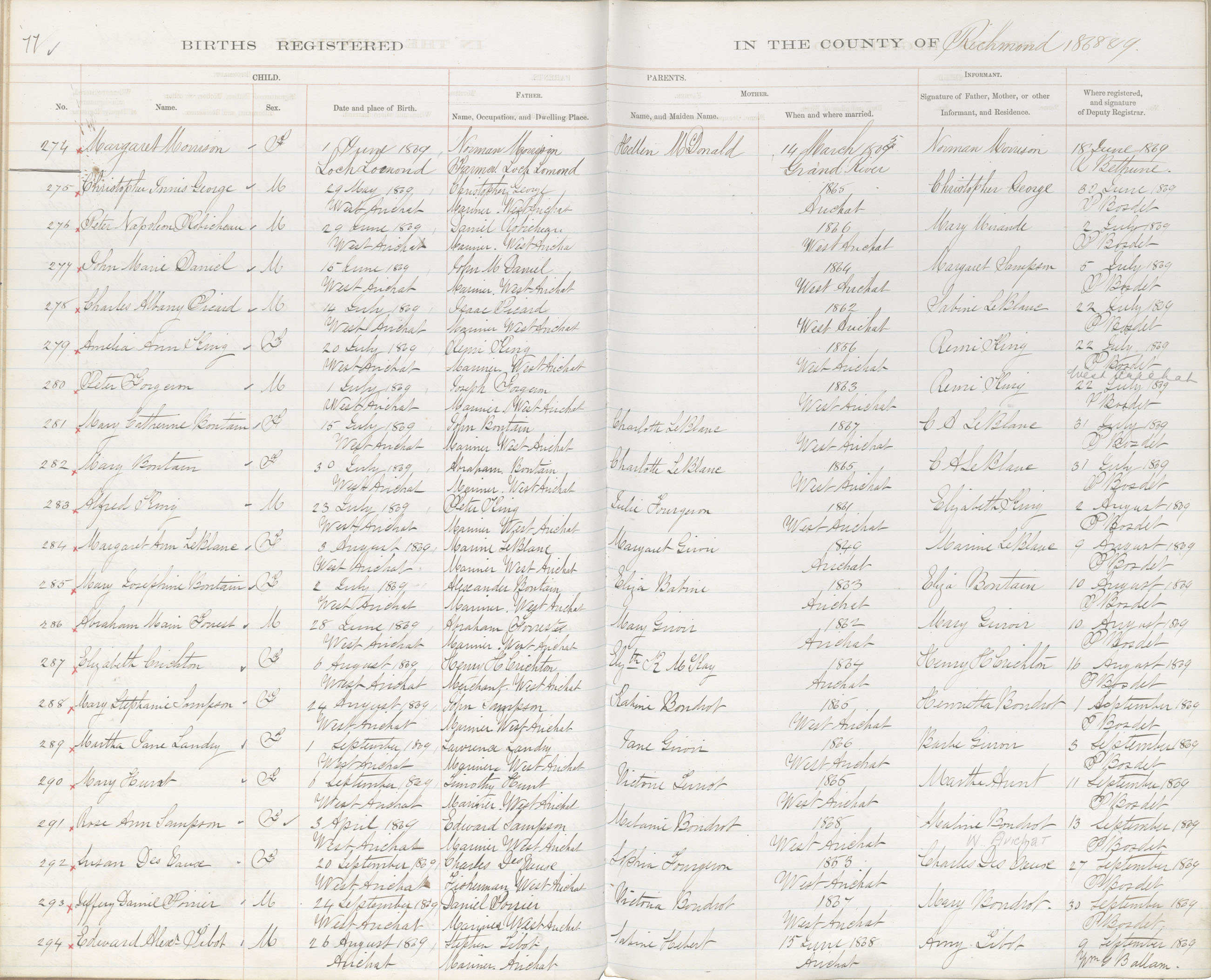 Female Birth Registration: Year: 1869 book: 1820 page: 77 number: 274
