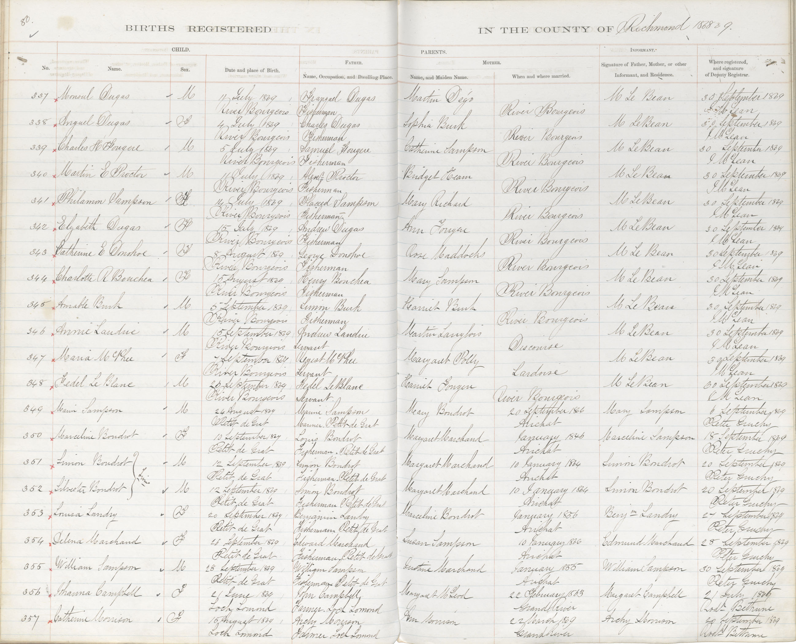 Male Birth Registration: Year: 1869 book: 1820 page: 80 number: 337
