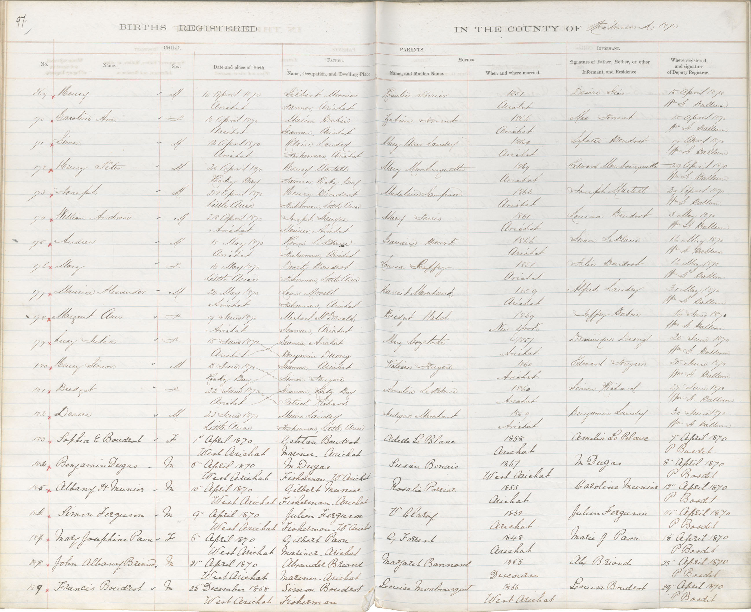 Female Birth Registration: Year: 1870 book: 1820 page: 97 number: 178