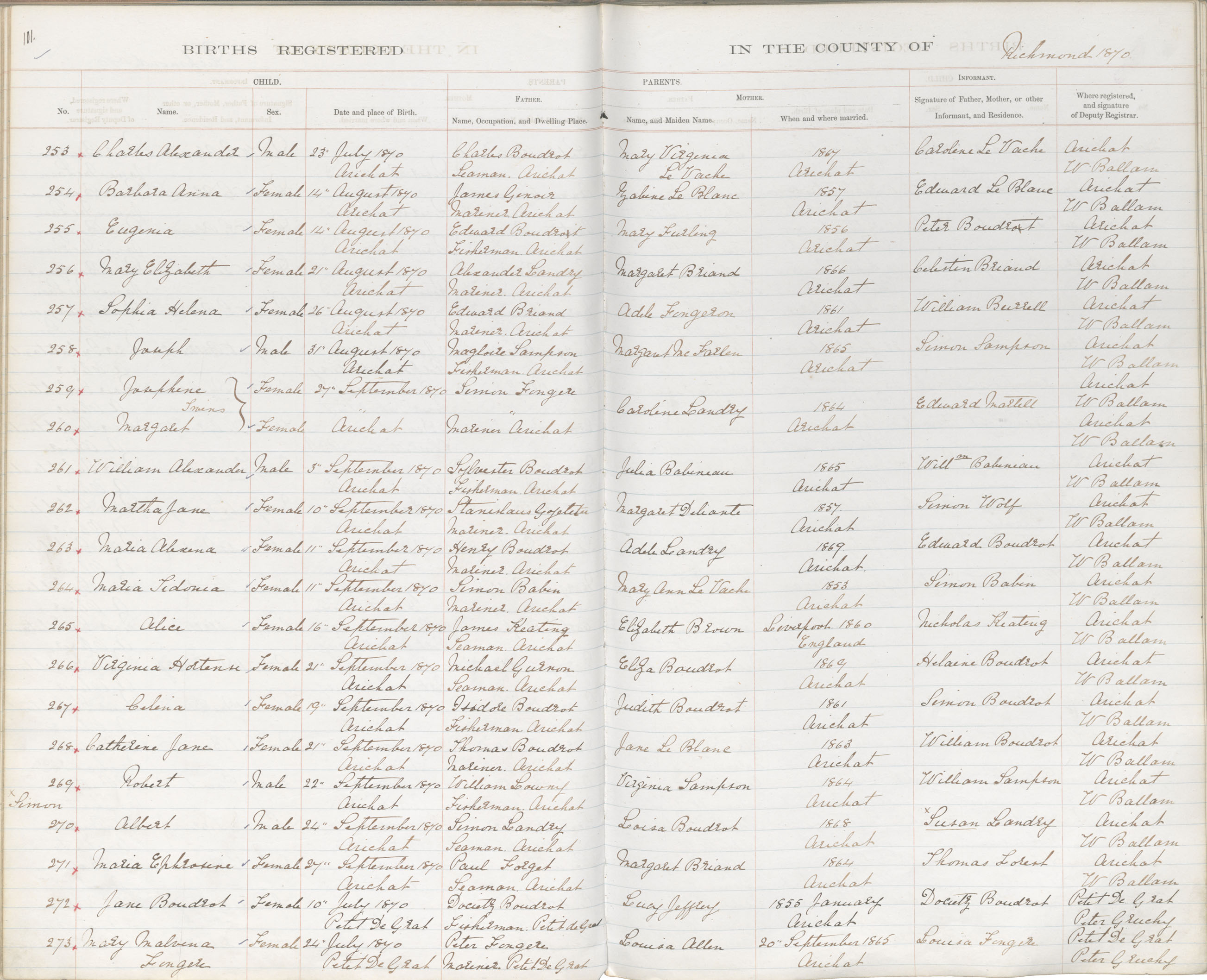 Male Birth Registration: Year: 1870 book: 1820 page: 101 number: 253