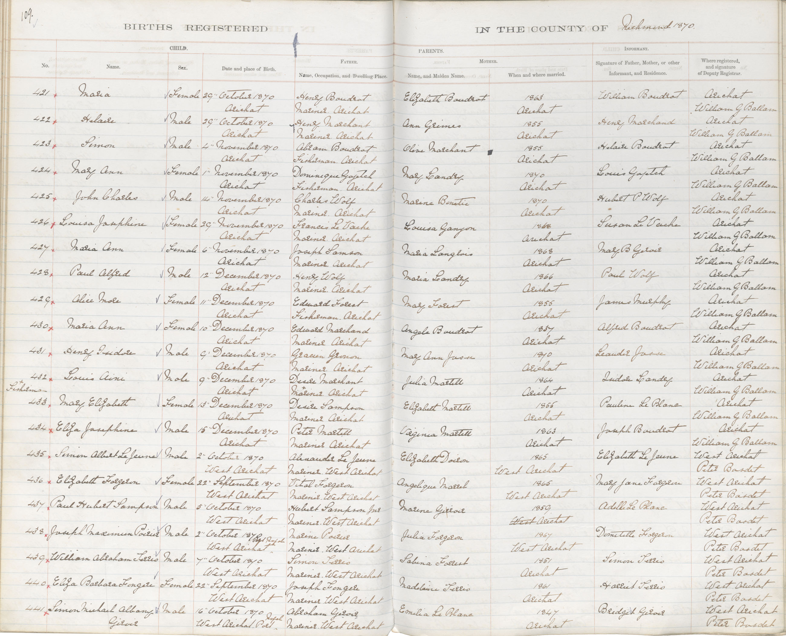 Male Birth Registration: Year: 1870 book: 1820 page: 109 number: 441