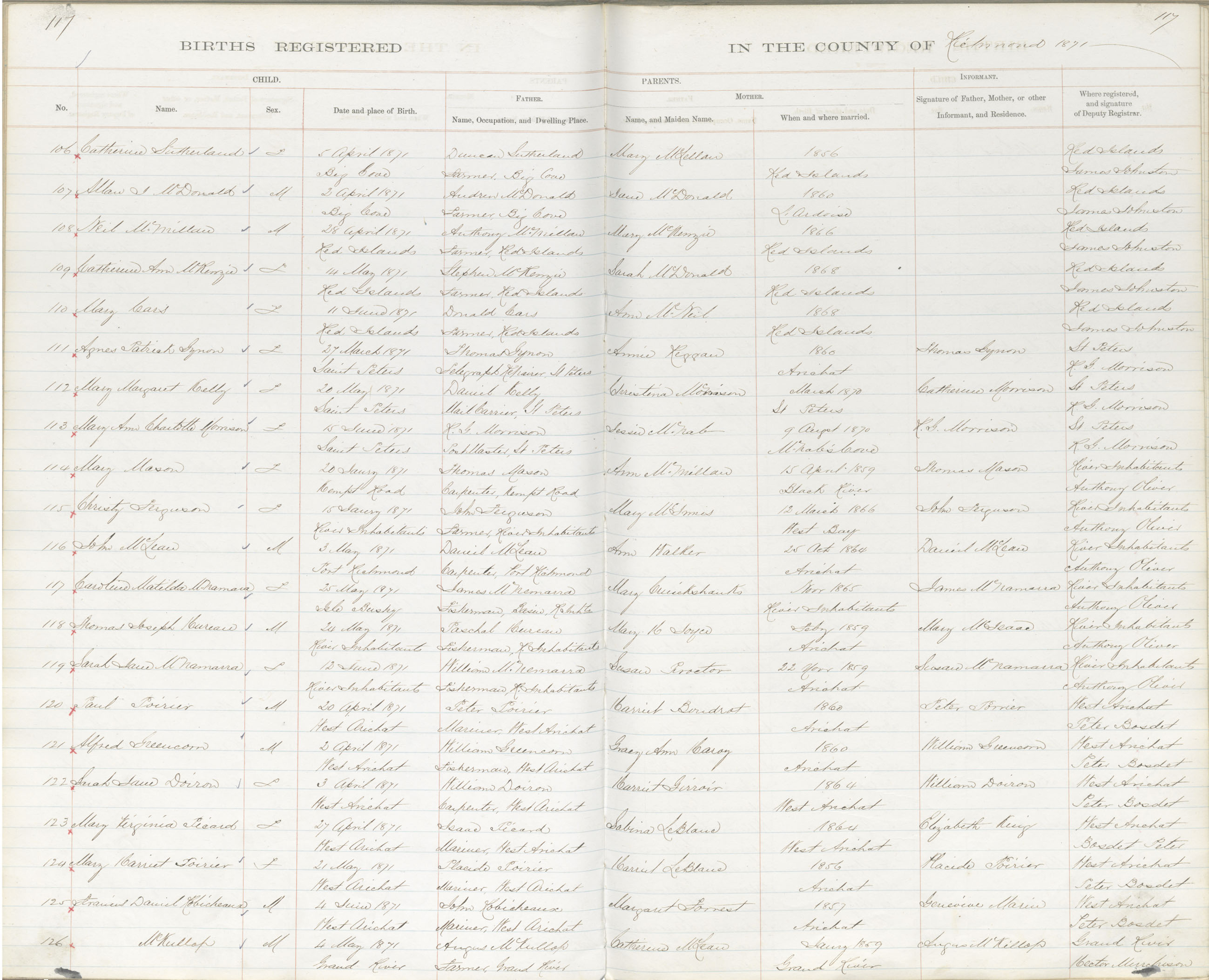 Male Birth Registration: Year: 1871 book: 1820 page: 117 number: 107