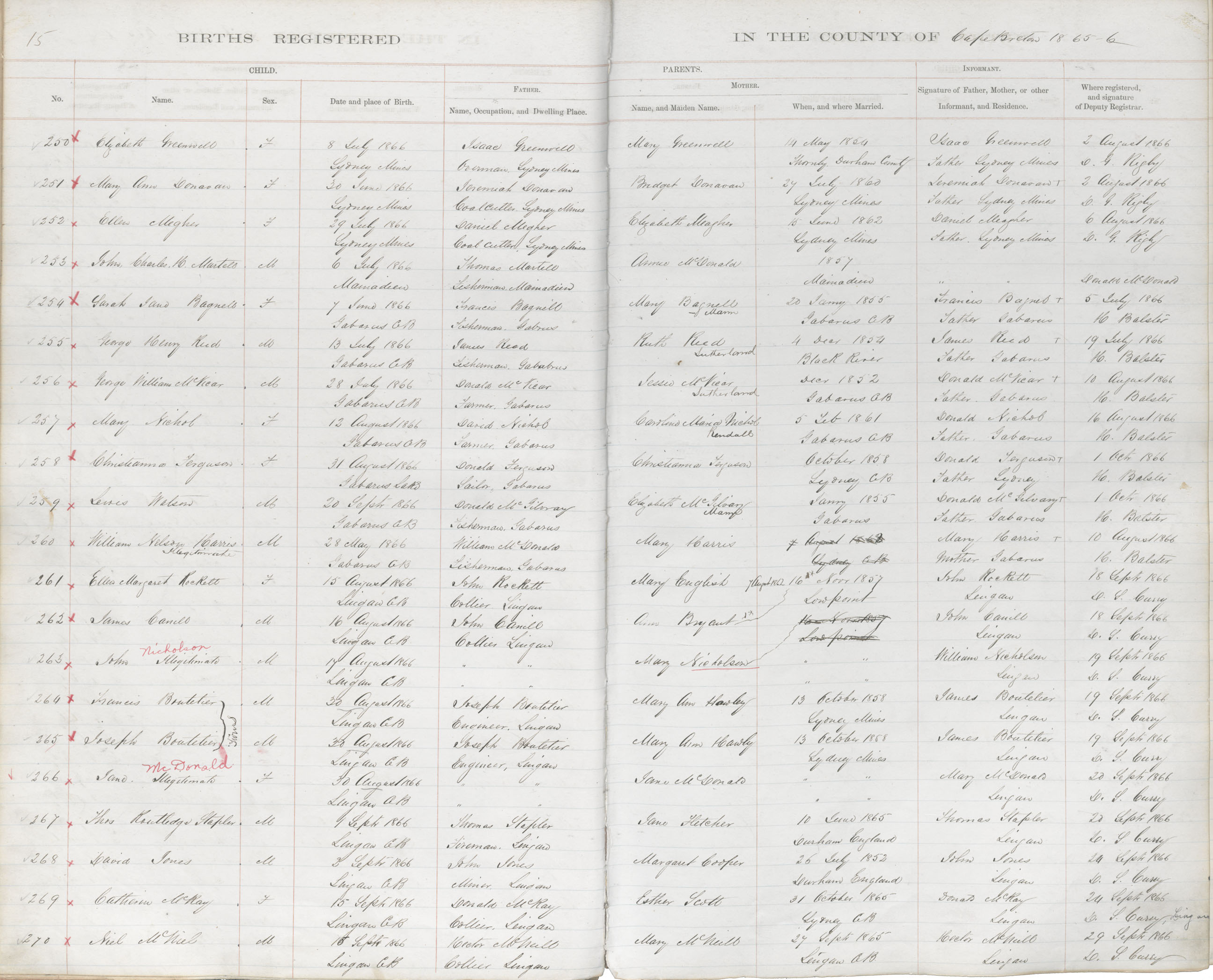 Female Birth Registration: Year: 1866 book: 1803 page: 15 number: 258