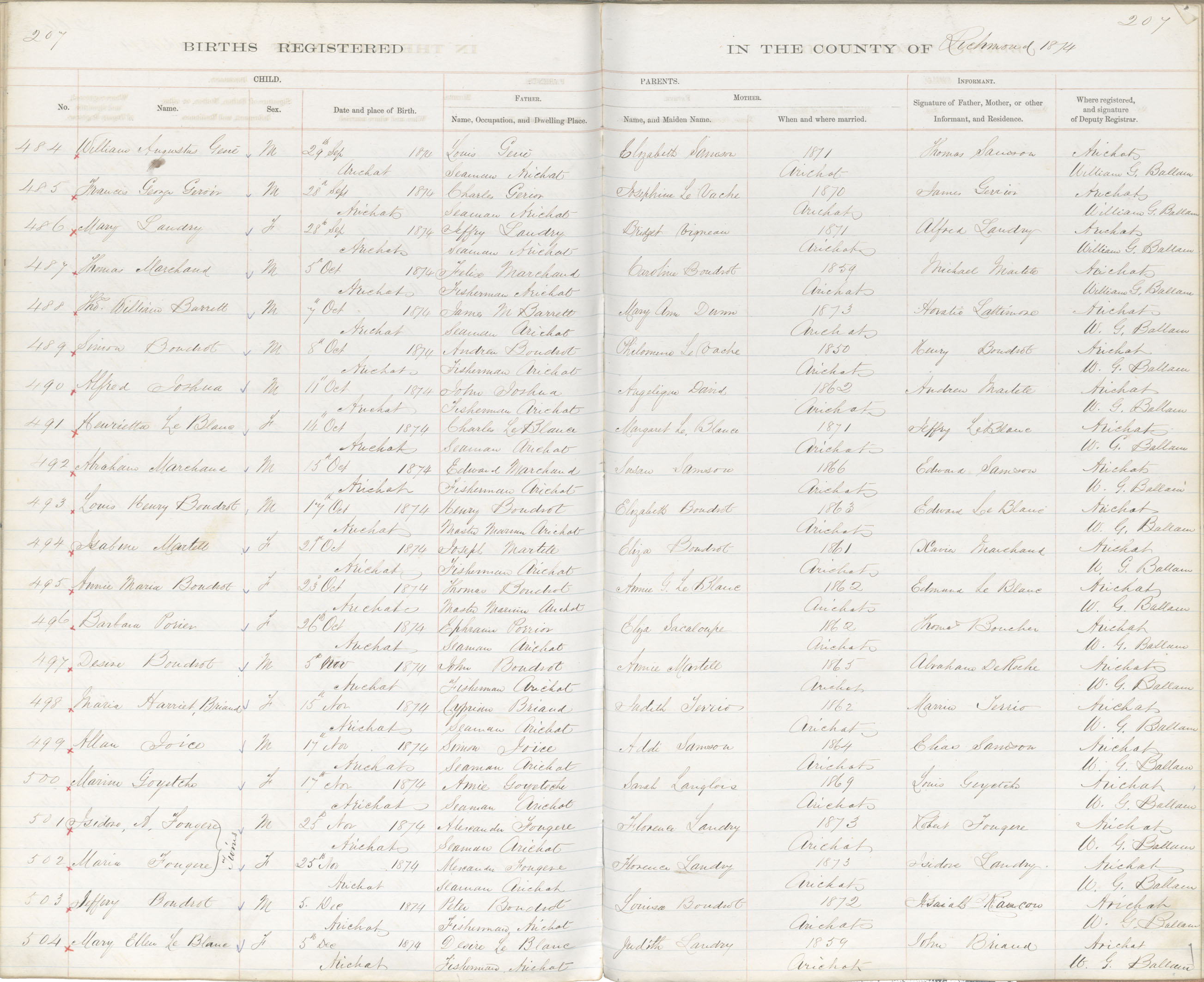 Female Birth Registration: Year: 1874 book: 1820 page: 207 number: 504