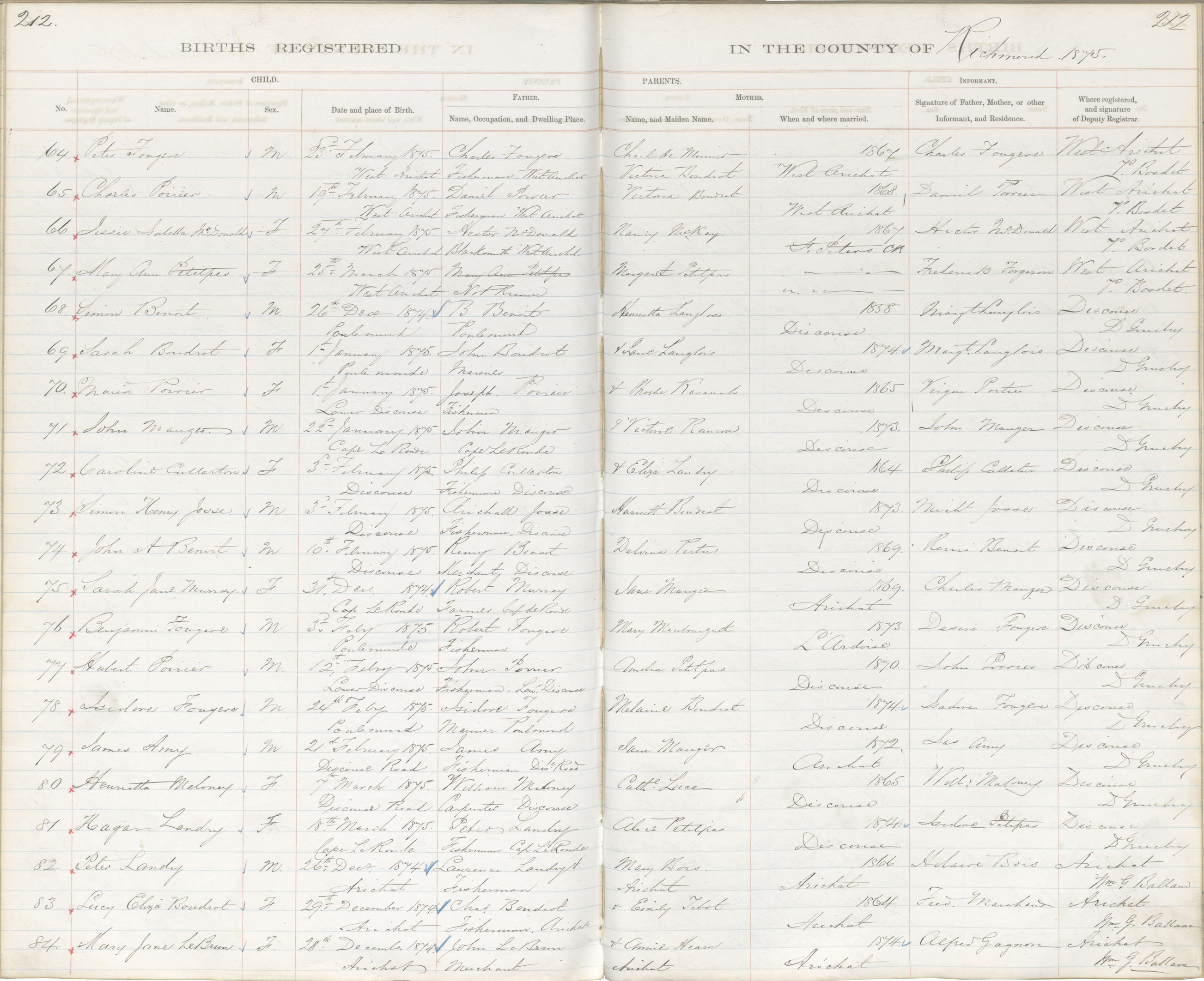 Female Birth Registration: Year: 1875 book: 1820 page: 212 number: 66