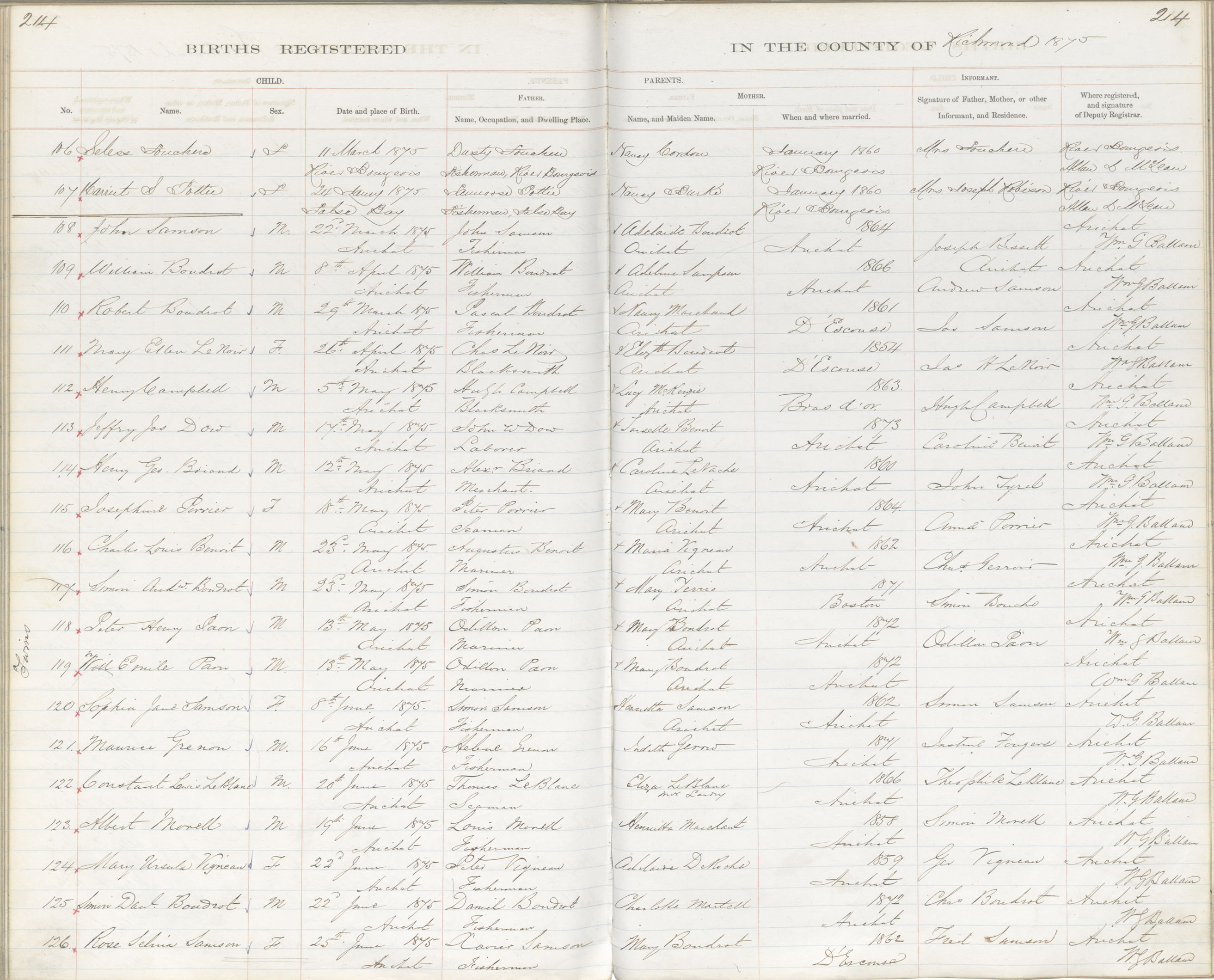 Female Birth Registration: Year: 1875 book: 1820 page: 214 number: 106
