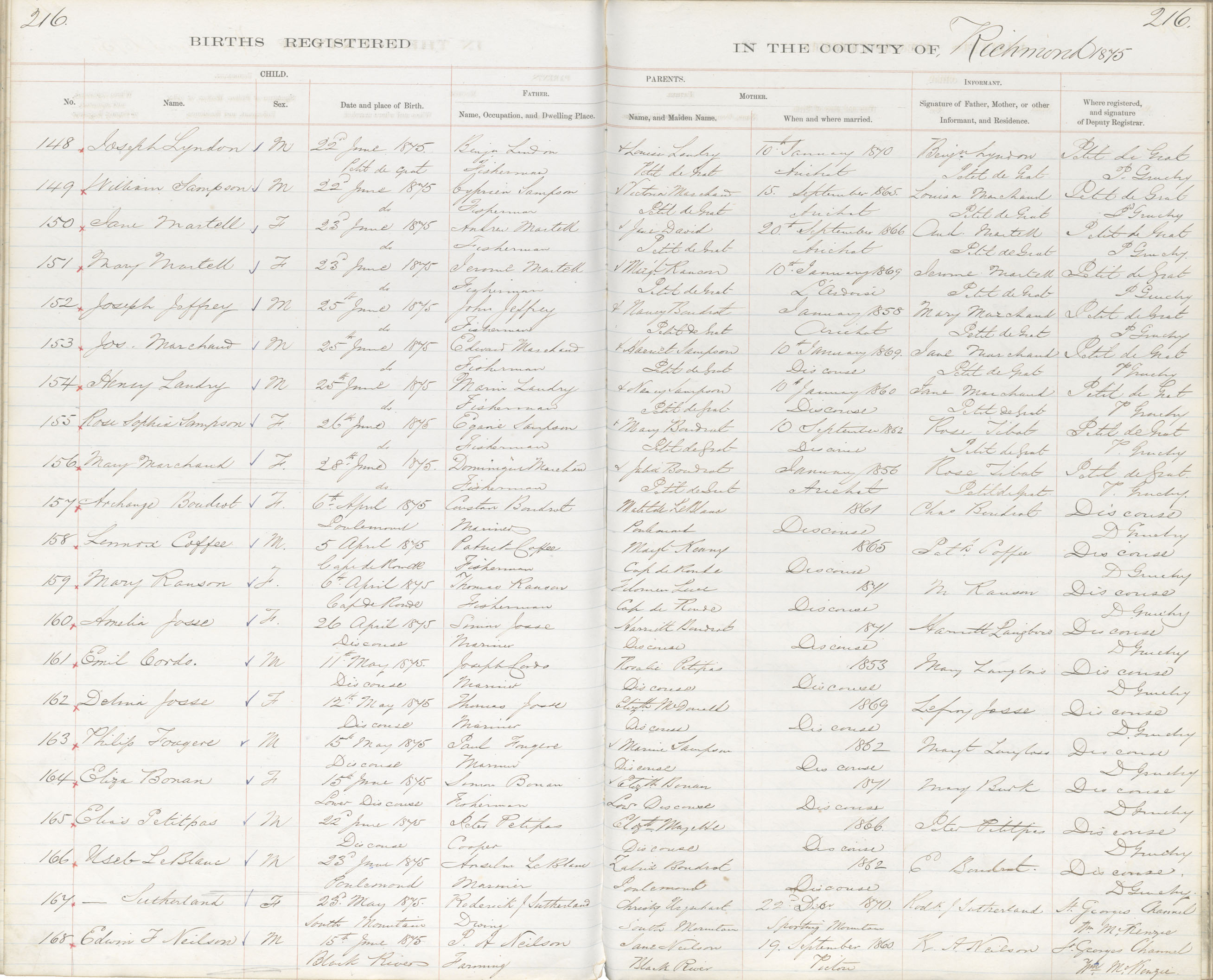 Male Birth Registration: Year: 1875 book: 1820 page: 216 number: 168