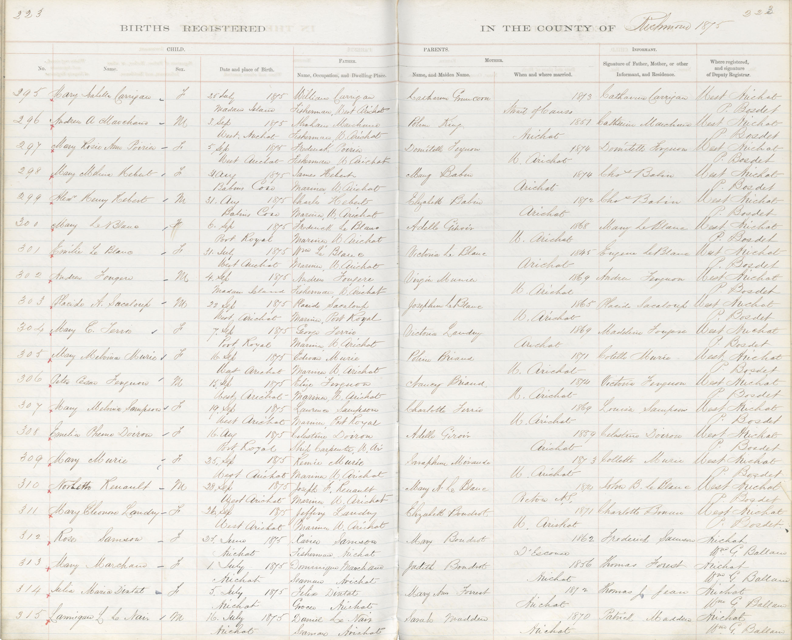 Female Birth Registration: Year: 1875 book: 1820 page: 223 number: 295