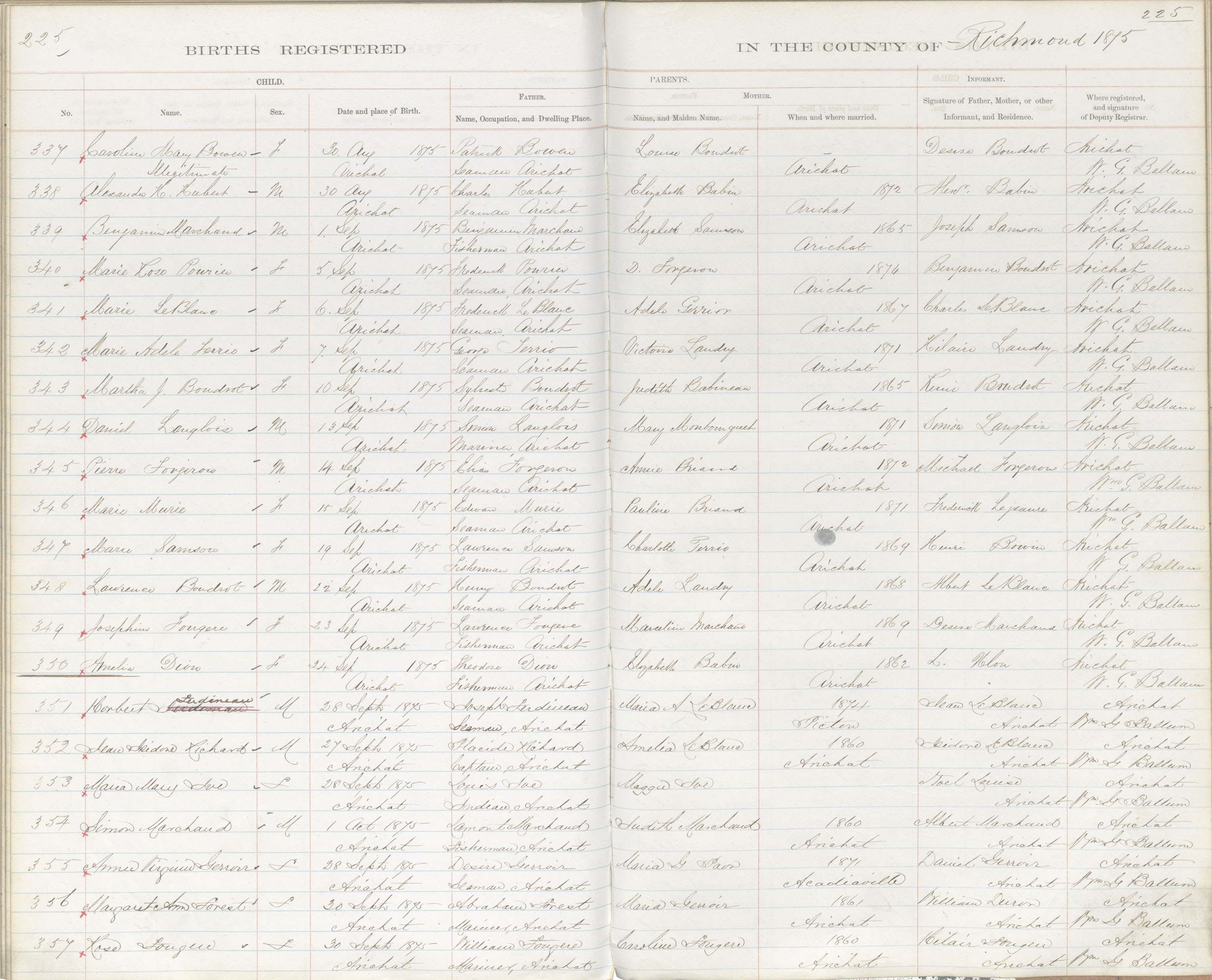 Female Birth Registration: Year: 1875 book: 1820 page: 225 number: 357