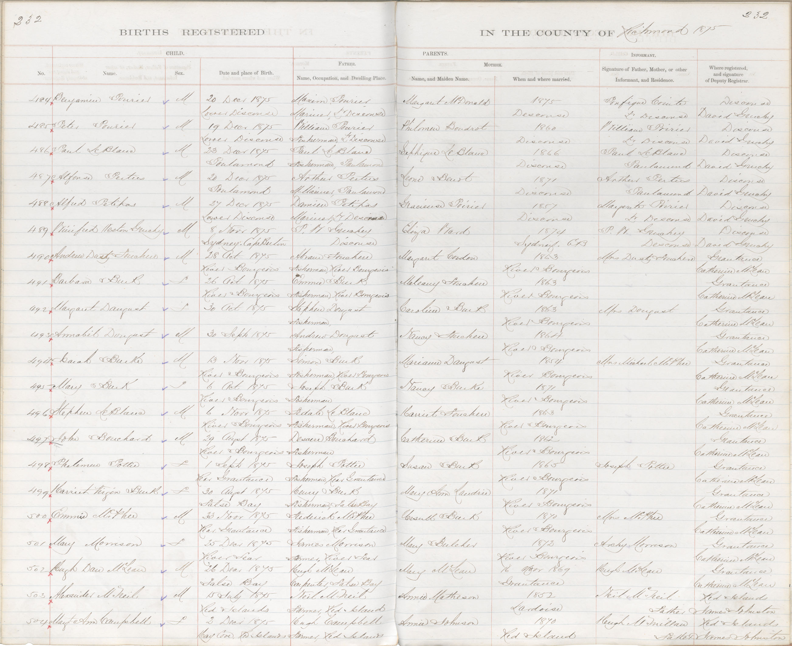 Male Birth Registration: Year: 1875 book: 1820 page: 232 number: 484
