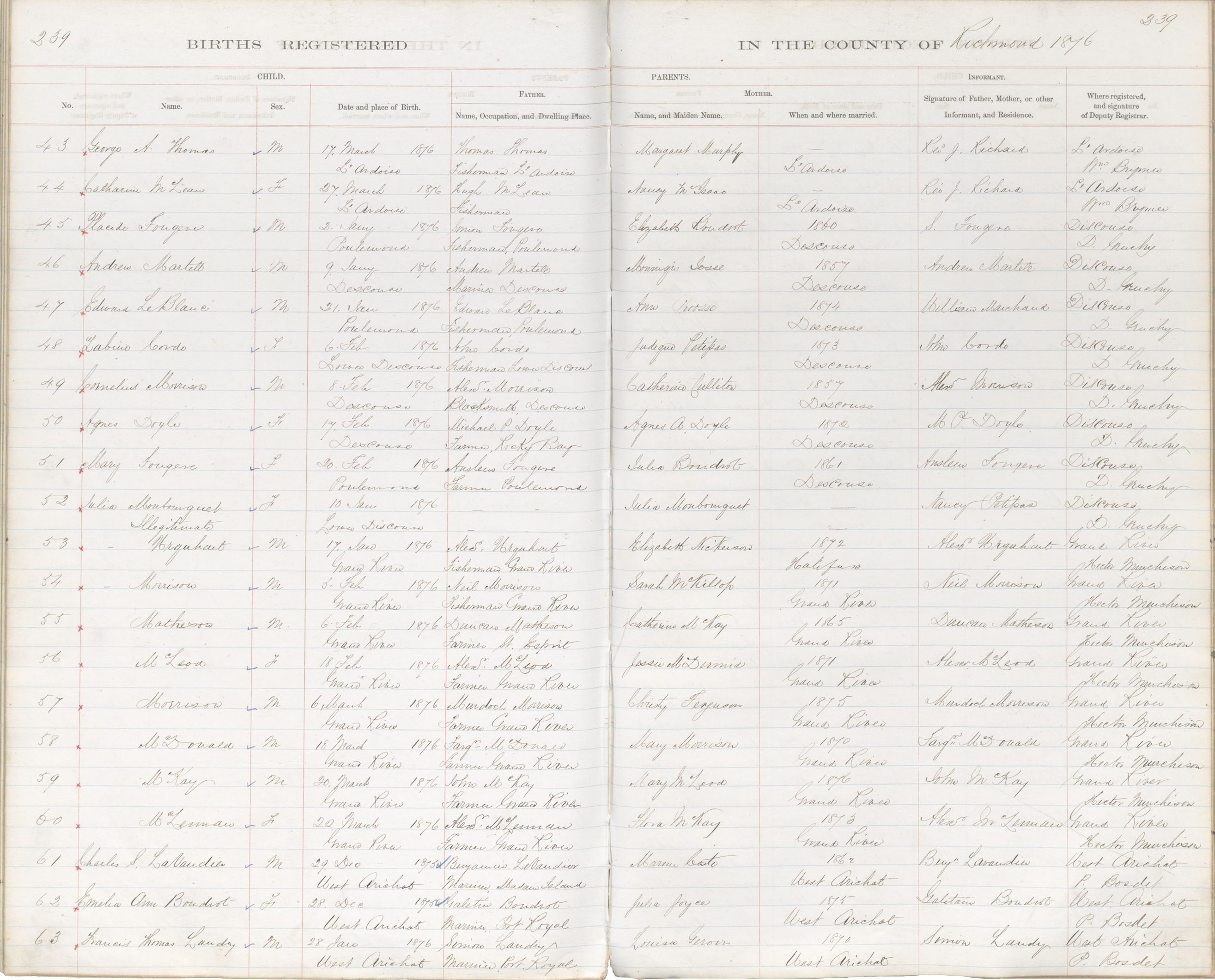 Male Birth Registration: Year: 1876 book: 1820 page: 239 number: 58