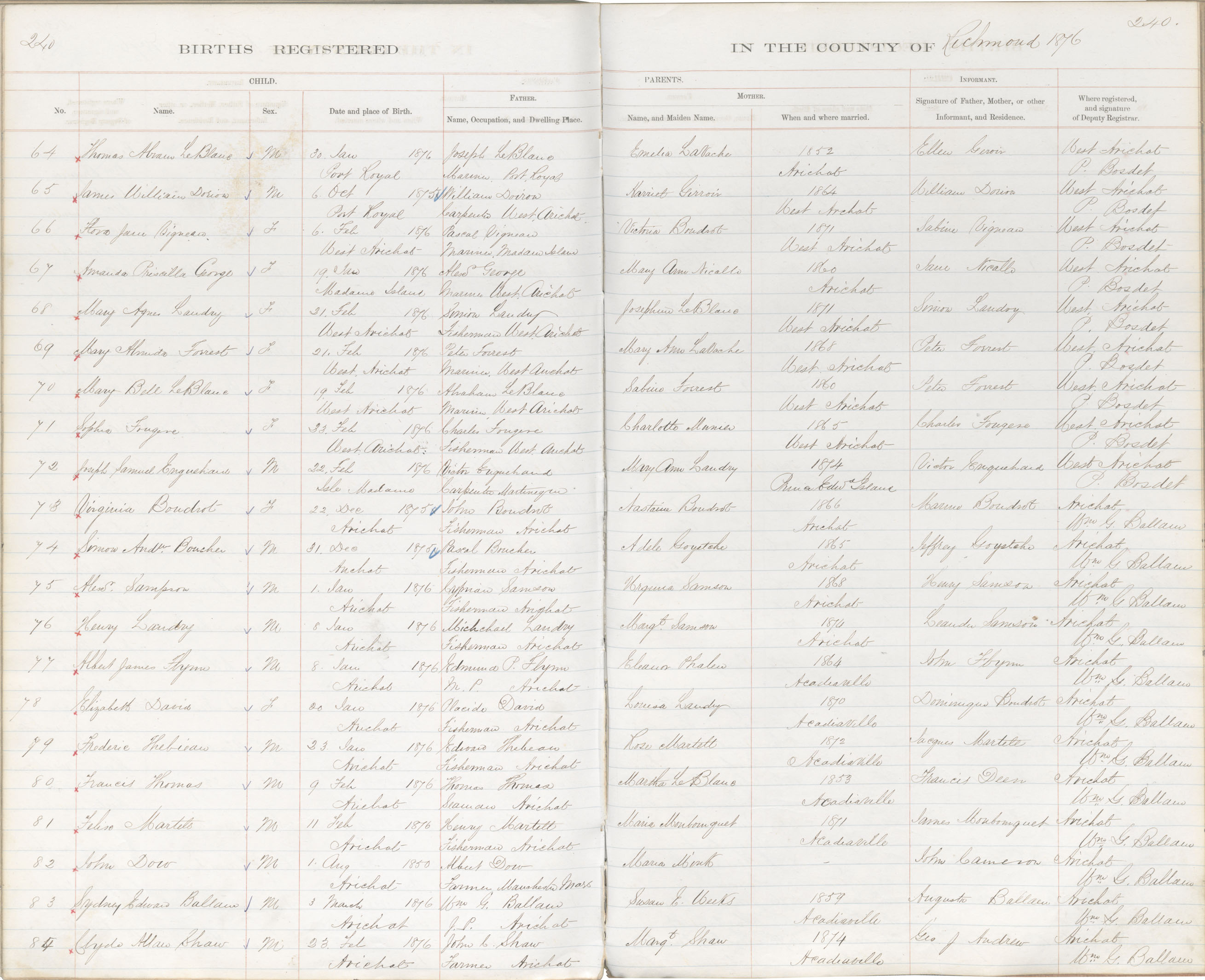 Male Birth Registration: Year: 1876 book: 1820 page: 240 number: 64