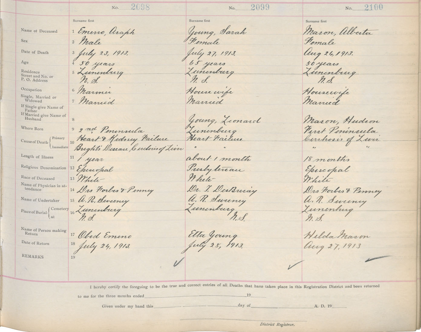 Death Registration: Year: 1913 book: 13 page: 350 number: 2098