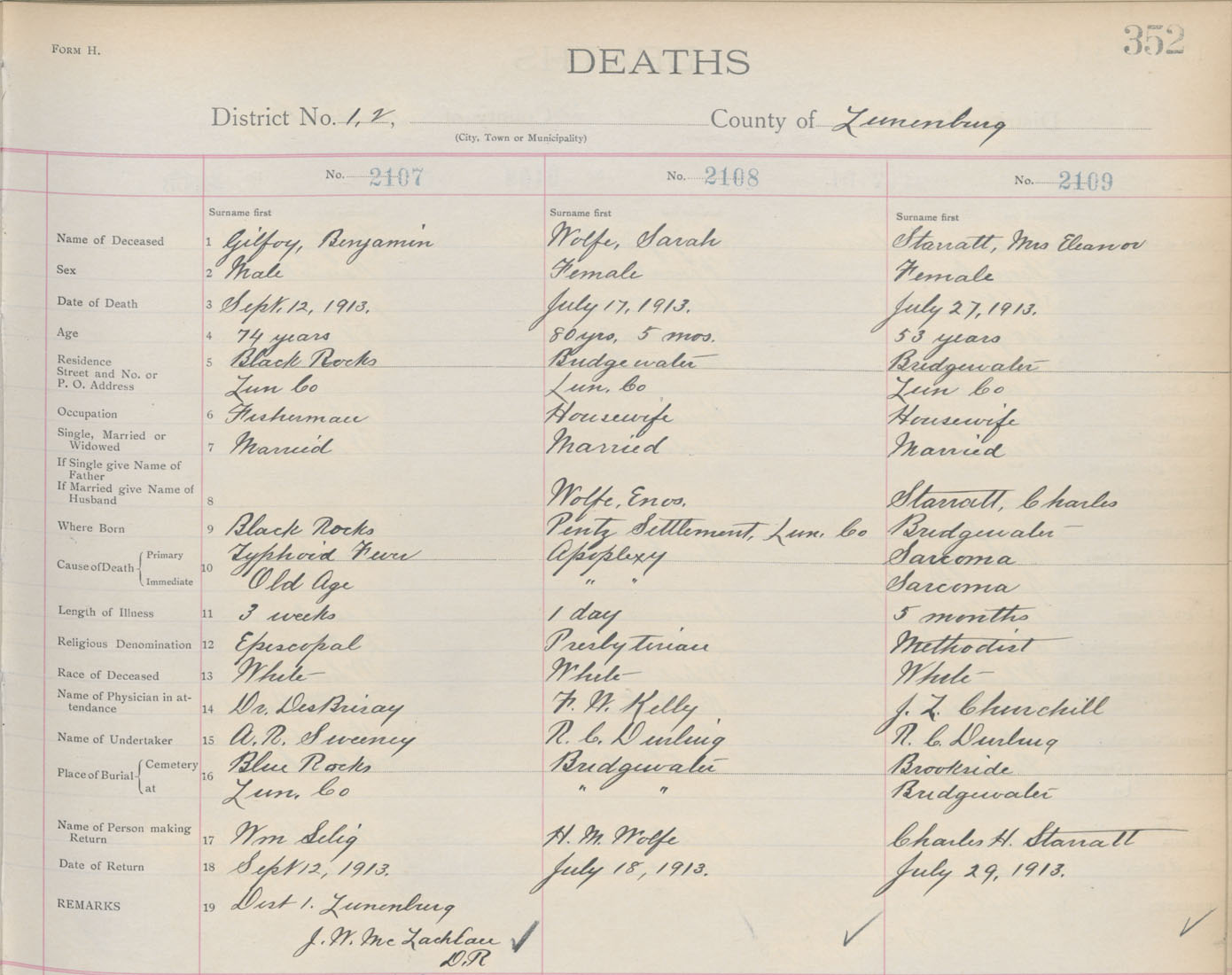 Death Registration: Year: 1913 book: 13 page: 352 number: 2107