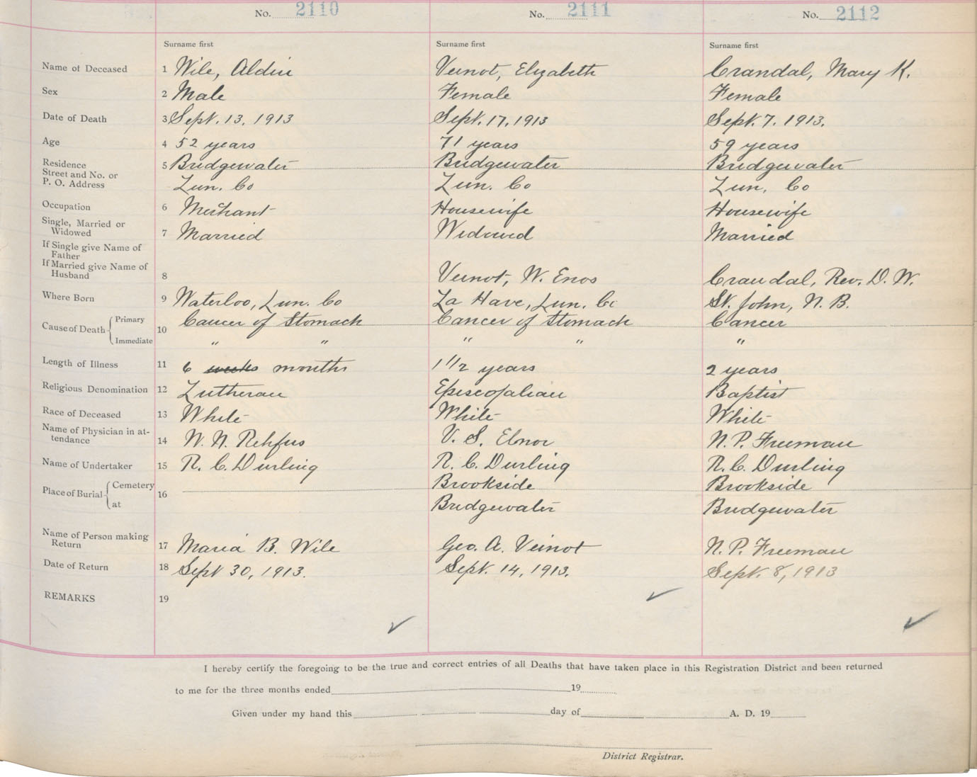 Death Registration: Year: 1913 book: 13 page: 352 number: 2110